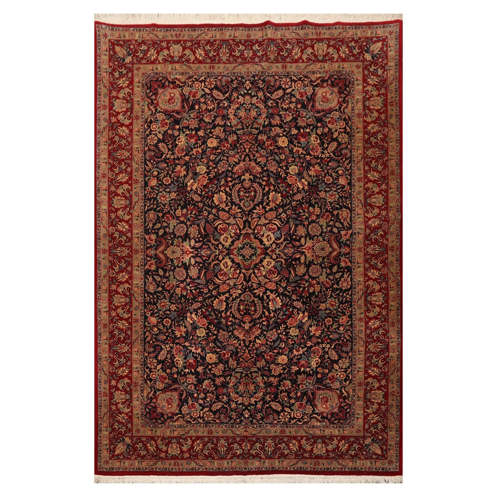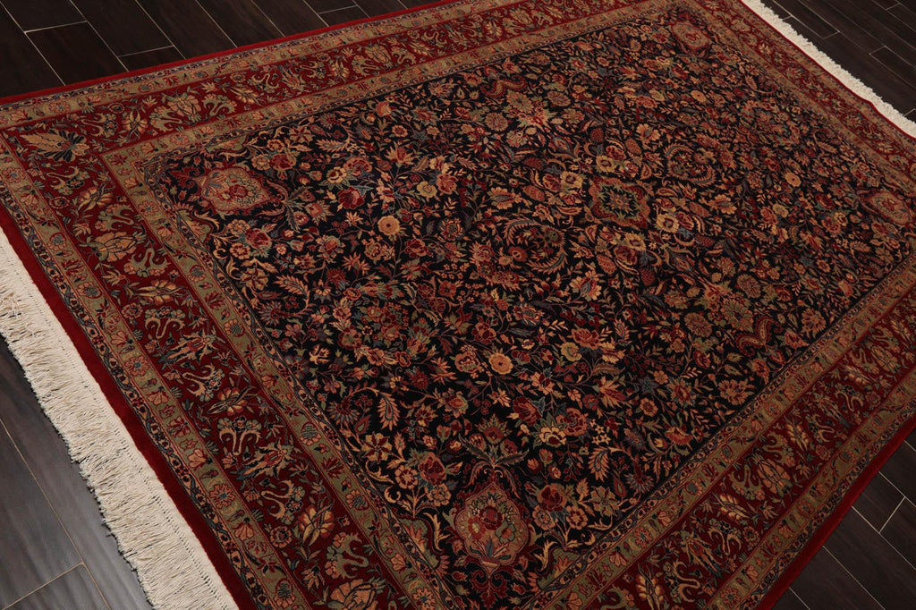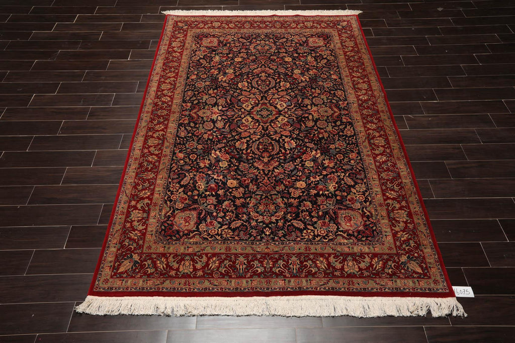 5'11" x 9' Hand Knotted Wool 300 KPSI Sarouk Oriental Area Rug Midnight Blue