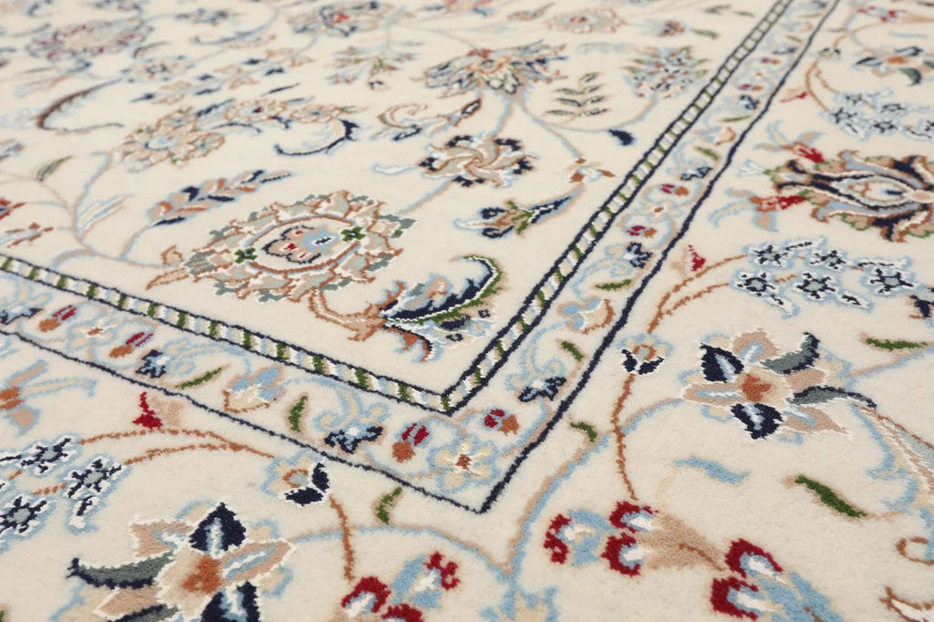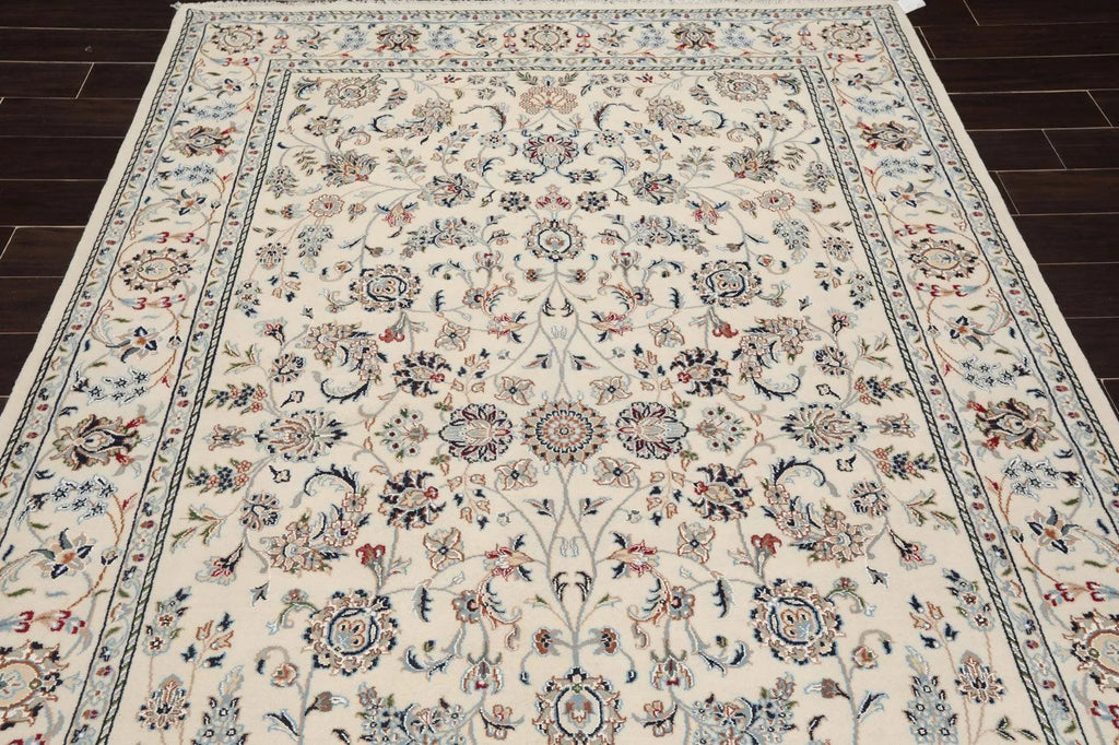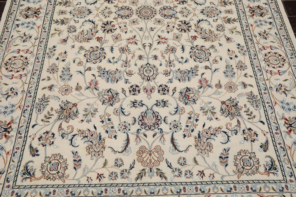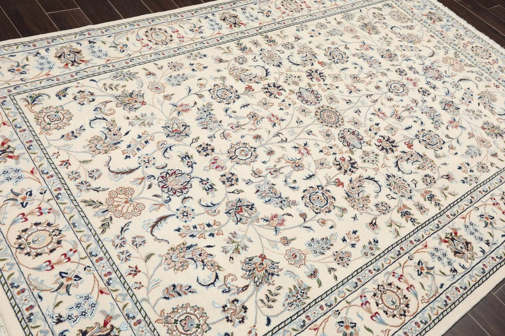 This is a beautiful Ivory, Navy, Aqua Color Hand Knotted, Oriental 100% Wool Rug. Its elegant style is easy to decorate with and perfect for living room, dining room, bedroom or anywhere in the residence and office.