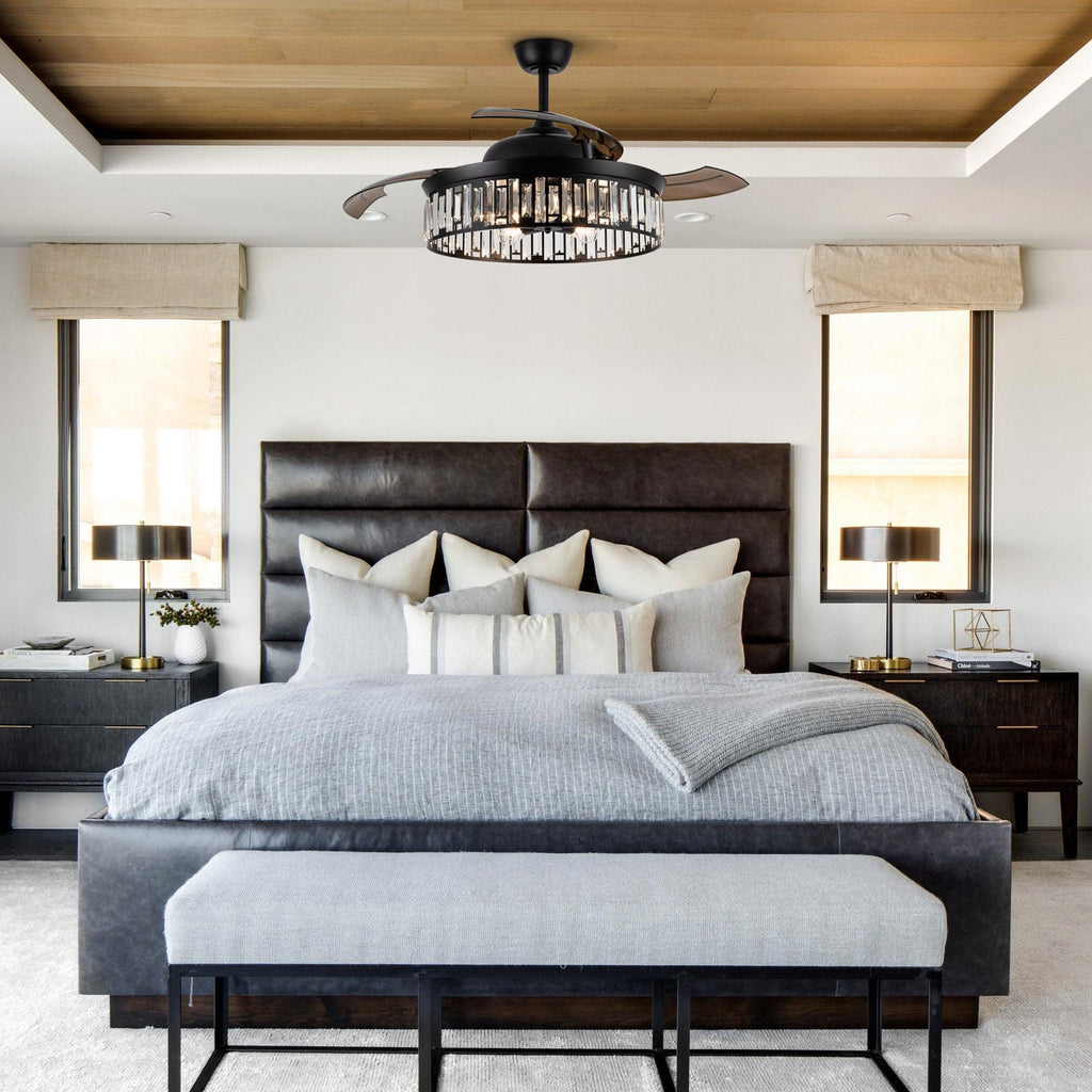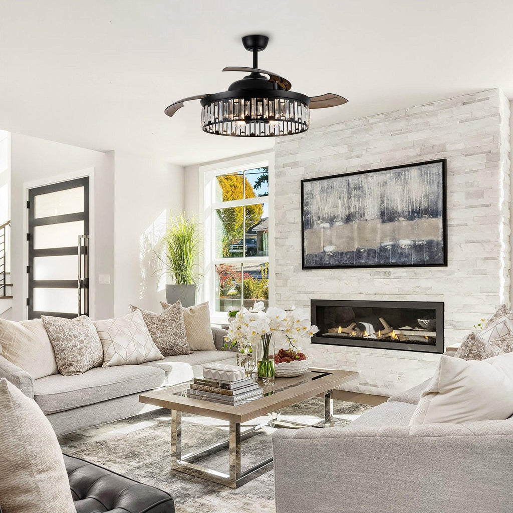 Advanced ceiling fans with unique aesthetics and energy-efficient design. When closed, the traditionally intrusive fan blades automatically retract and hide, visually transforming the fixture into a slim, modern pendant light. Turning on a fan creates centrifugal force, causing the blades to expand to circulate air around the room. The extra reversible feature allows you to use this beautiful fan in all seasons. It creates open spaces within a room environment, collects less dust, and is unobtrusive and versatile enough to blend visually into most building interiors.