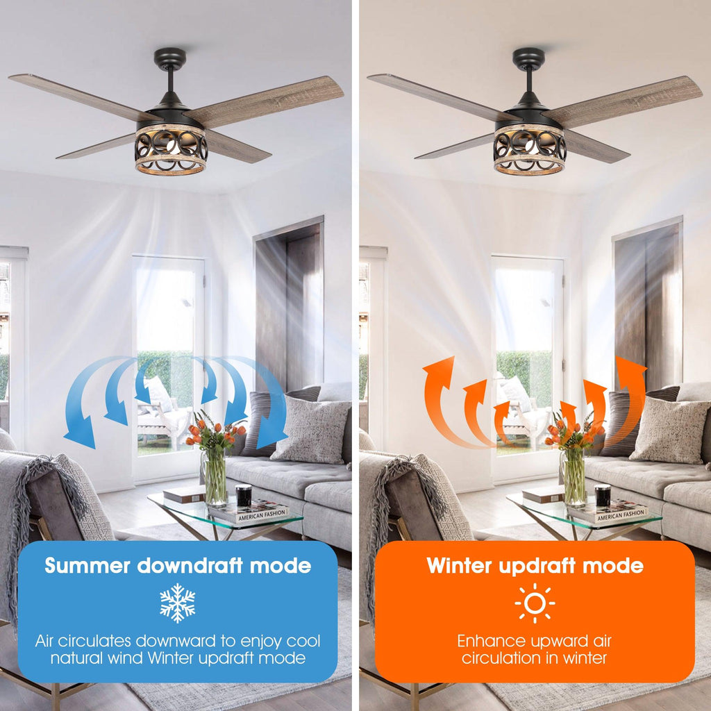 It's a modern look to your home with this farmhouse home antique black and wood ceiling fan, this fan features 4 plywood blades to help move air efficiently, with a quiet, wobble-free operation. The handy remote control provides independent light and speed control. It is more than a ceiling fan, it is an art.