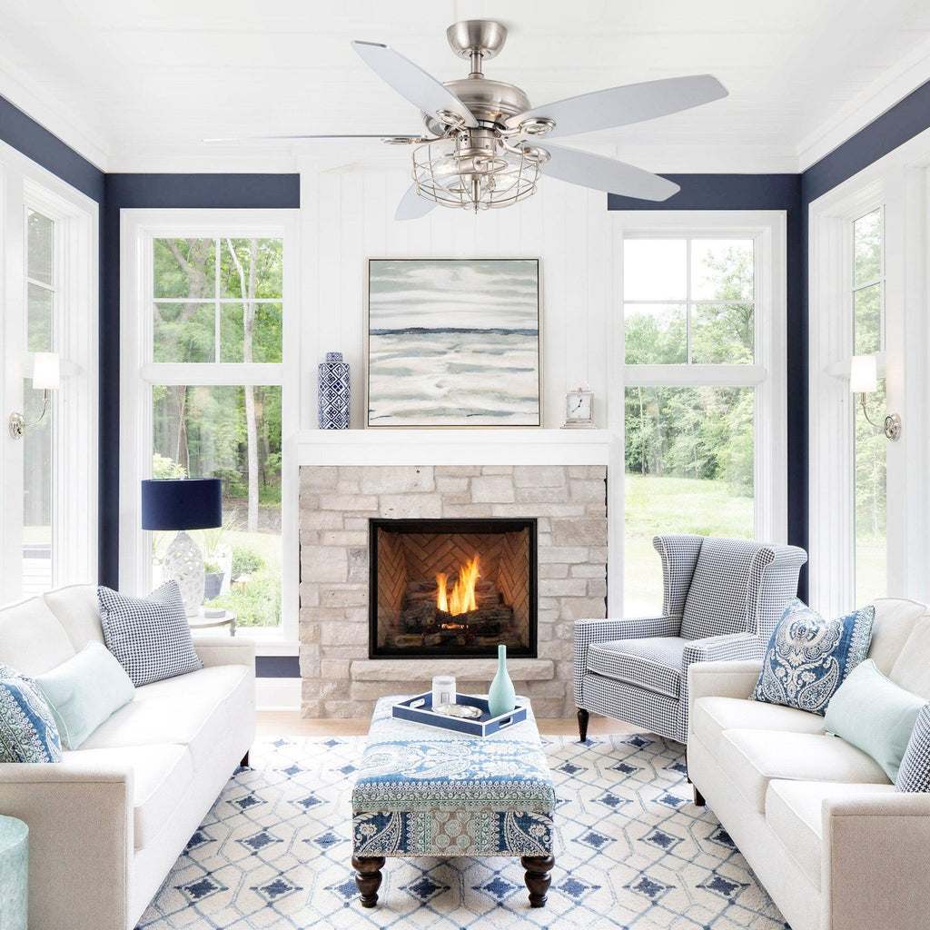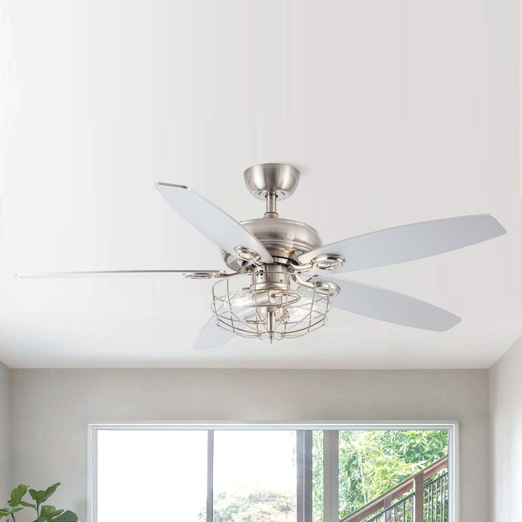 Make any ensemble breezy and bright with this beautiful 5-blade caged ceiling fan. Crafted of metal, it offers a 2-tone black cage-inspired shade that highlights its exposed LED bulbs for factory-chic flair. Let it shine over an industrial-inspired living room look to instantly elevate your entertaining space, effortless above streamlined leather sofas and a weathered wood coffee table to achieve rustic contrast. Whether you need a light for reading or are just trying to tie your aesthetic altogether, this lovely luminary is sure to get the job done as it adds a splash of high style.