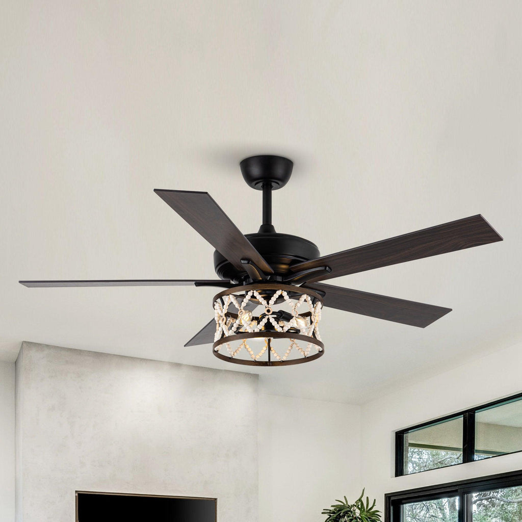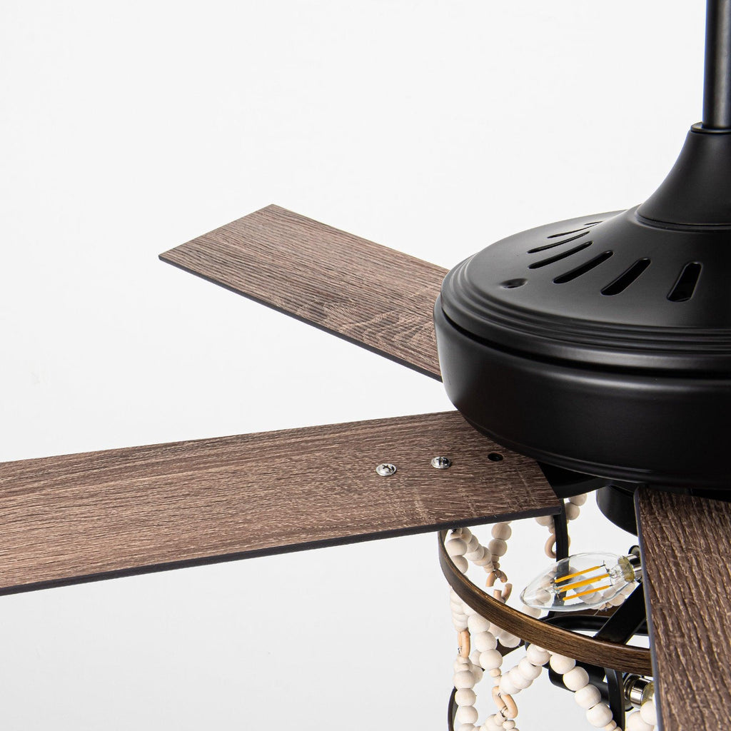 Bring appeal to vintage-inspired home decor with this 52-inch industrial-meets-bohemian ceiling fan. The metal frame, complemented by the white wooden bead-attached shade, uses three 25-watt E12 bulbs inside (bulbs not included) to cast a warm, welcoming glow in your space. Reversible fan blades provide options for different seasons. A remote control is included for you to control the wind speed in 3 levels.