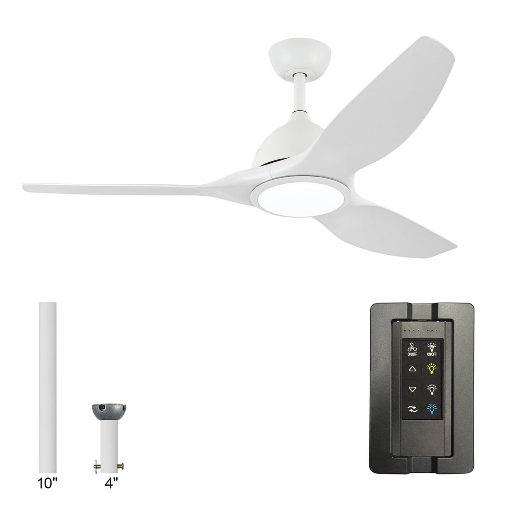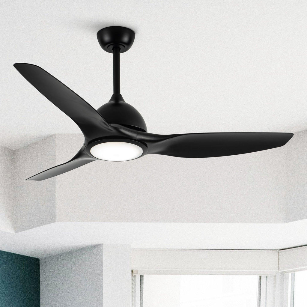 This chic, 52" LED ceiling fan, designed in an industrial style, flawlessly fuses functionality and style to augment your home's visual appeal. Its white/matte black finish not only accentuates its minimalist aesthetic, but also pairs perfectly with the energy-efficient LED light. Moreover, the inclusion of a handheld remote ensures that you have absolute control, allowing you to effortlessly adjust the reversible motor to six different speeds, and also manage the intensity of the fan light. However, it is specifically designed for dry indoor spaces. Therefore, this ceiling fan will undeniably impart a touch of sophistication to any room it graces.