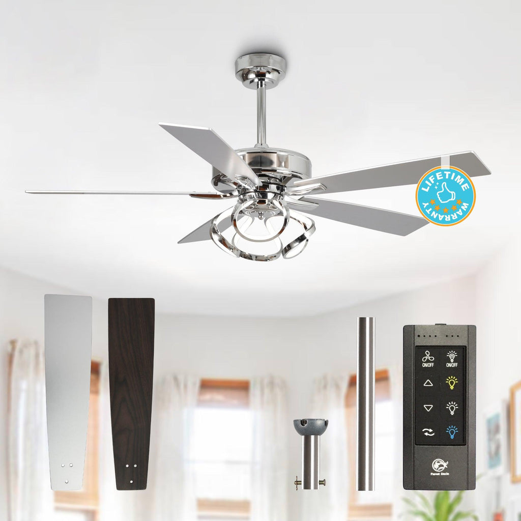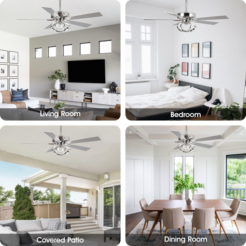 This 5 blade ceiling fan brings a modern and otherworldly look to your living room or bedroom. It has a simple and elegant appearance that brings light to your space. The 5 blades are double-sided to improve room ventilation. It also has six speeds that you can adjust using the included remote. Plus, this ceiling fan comes with 4-inch and 10-inch downrods for ceiling compatibility. Ceiling fans are energy efficient and easy to install, so you can start enjoying comfort in no time. This fan can be dimmed, and the color temperature adjustment range is 3000/4000/6000K.