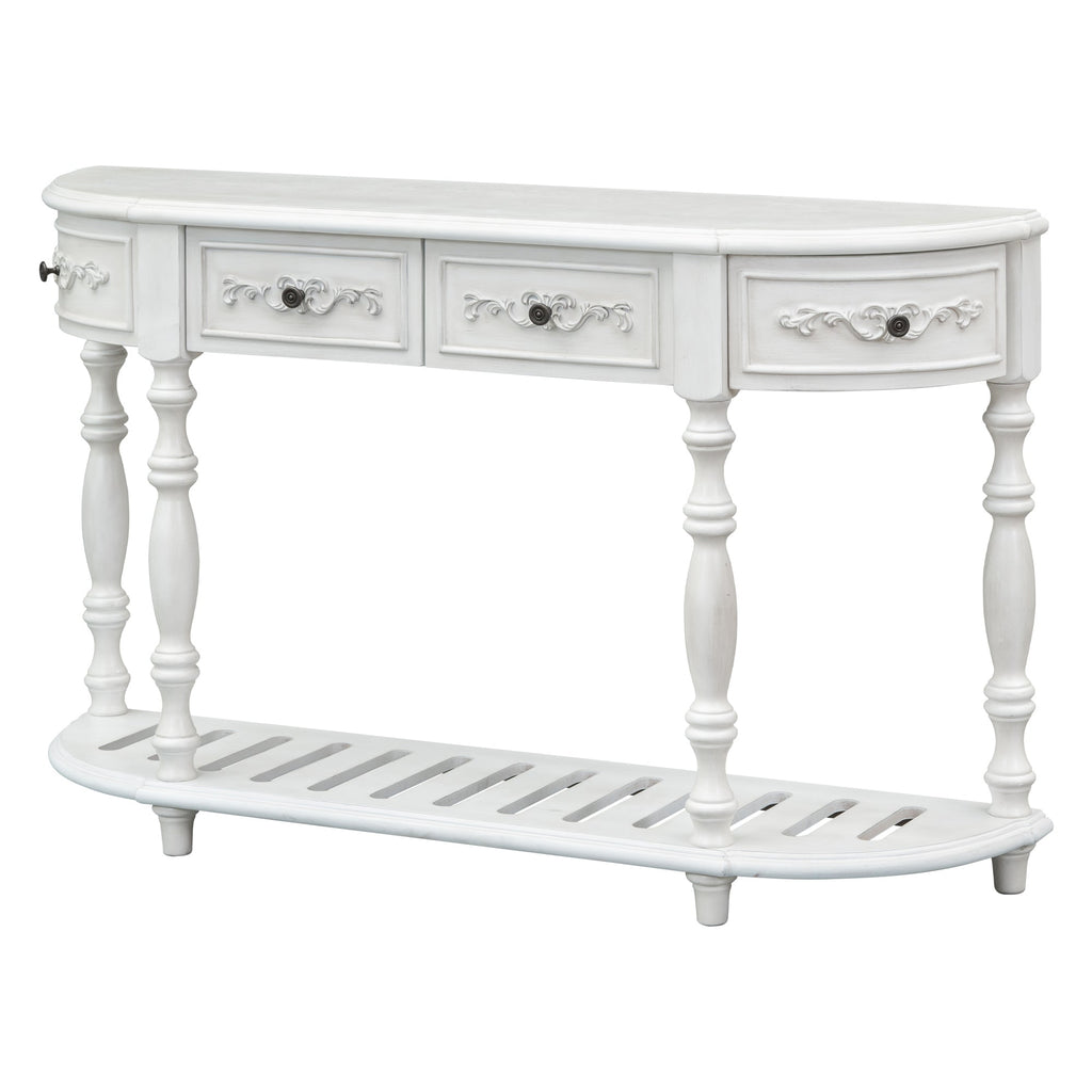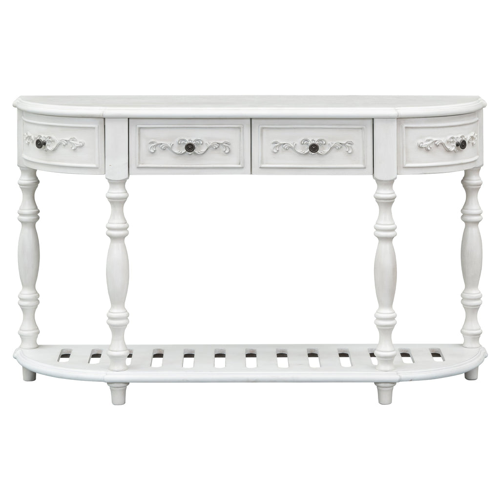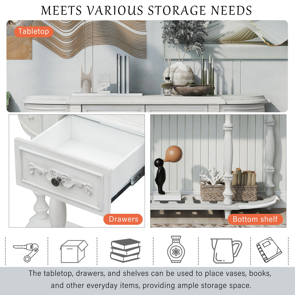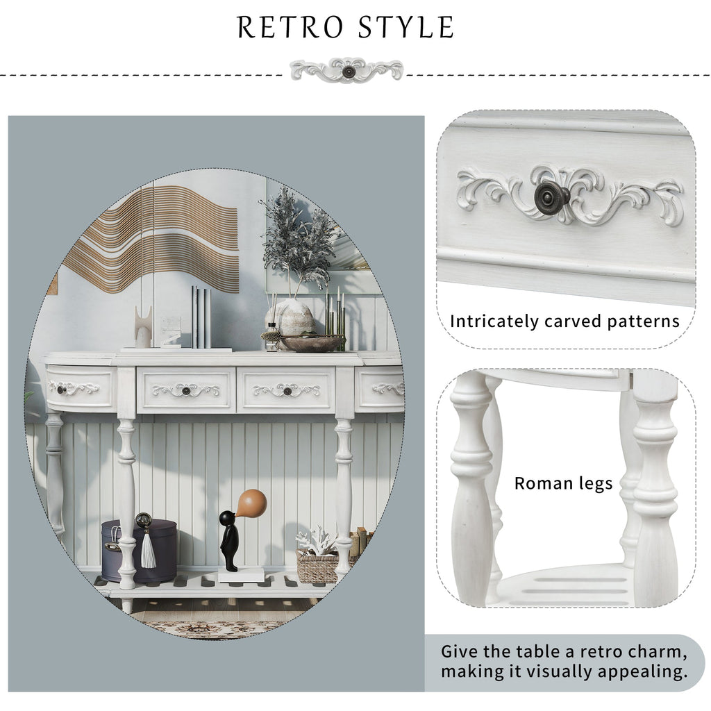 - [Spacious Storage Space] This classic style console table has four drawers and one shelf to offer enormous storage to support debris basket, pot culture, books, etc. Top board can place your beautiful vase, cute photos and decorations, additional knickknacks or a lamp.