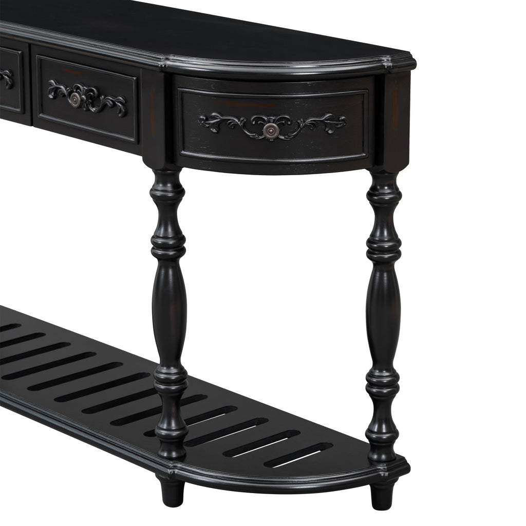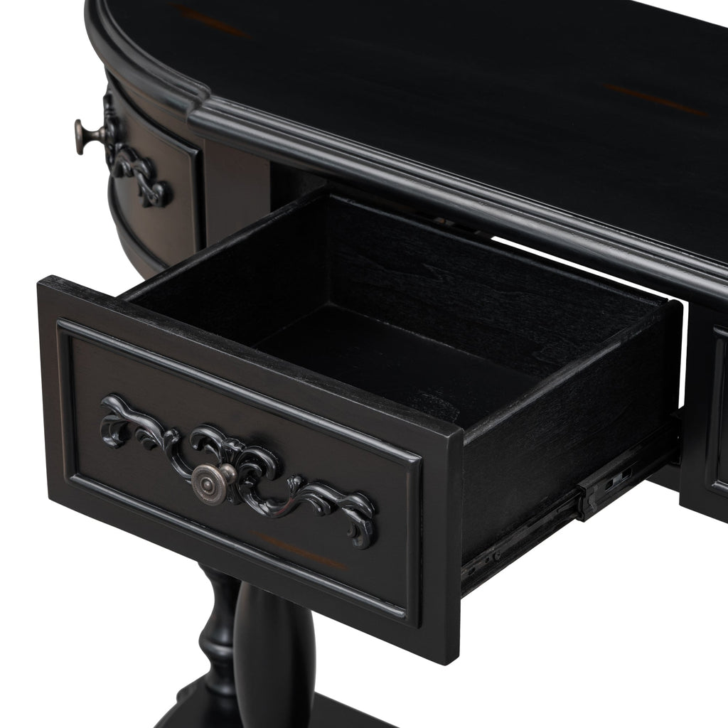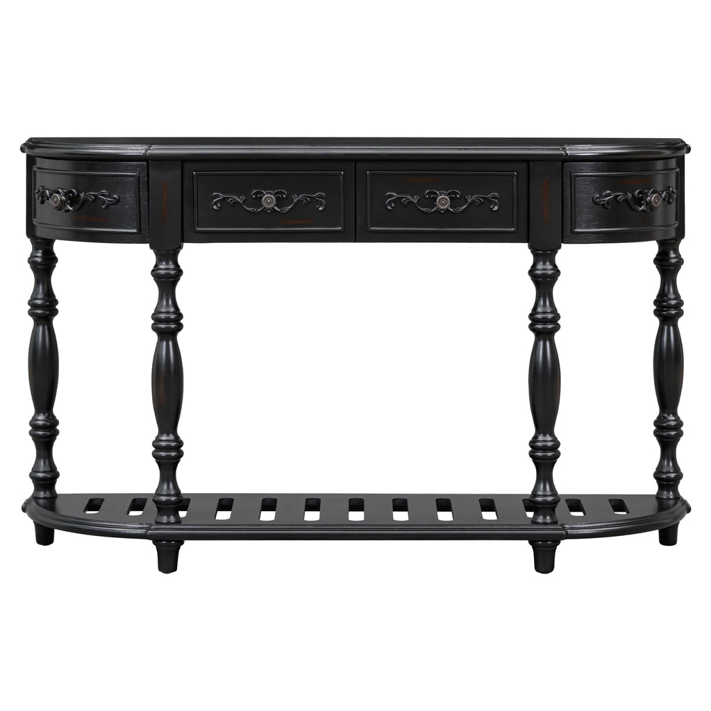 - [Spacious Storage Space] This classic style console table has four drawers and one shelf to offer enormous storage to support debris basket, pot culture, books, etc. Top board can place your beautiful vase, cute photos and decorations, additional knickknacks or a lamp.