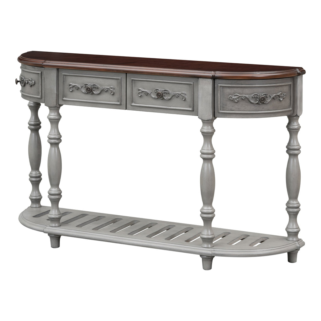 - [Spacious Storage Space] This classic style console table has four drawers and one shelf to offer enormous storage to support debris basket, pot culture, books, etc. Top board can place your beautiful vase, cute photos and decorations, additional knickknacks or a lamp.