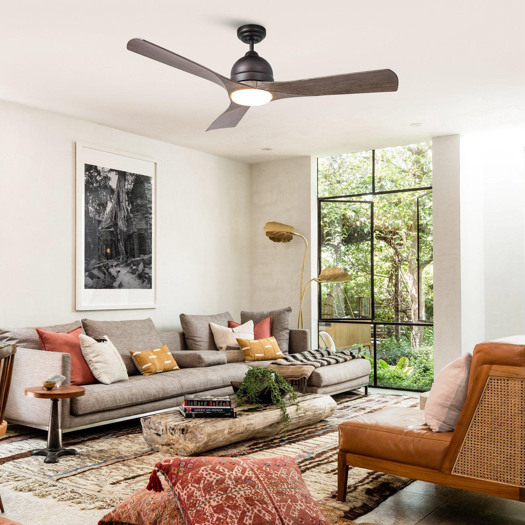 Maintain a cool ambiance in your home with this 54" ceiling fan. Boasting a sleek, modern design, it is available in your choice of Graphite or Oil Rubbed Bronze finishes. The fan includes 3 reversible blades, adding both style and functionality to any room and can be installed with or without lighting fixtures. For your convenience, it is accompanied by a remote control and a comprehensible instruction manual that makes self-installation a breeze.
