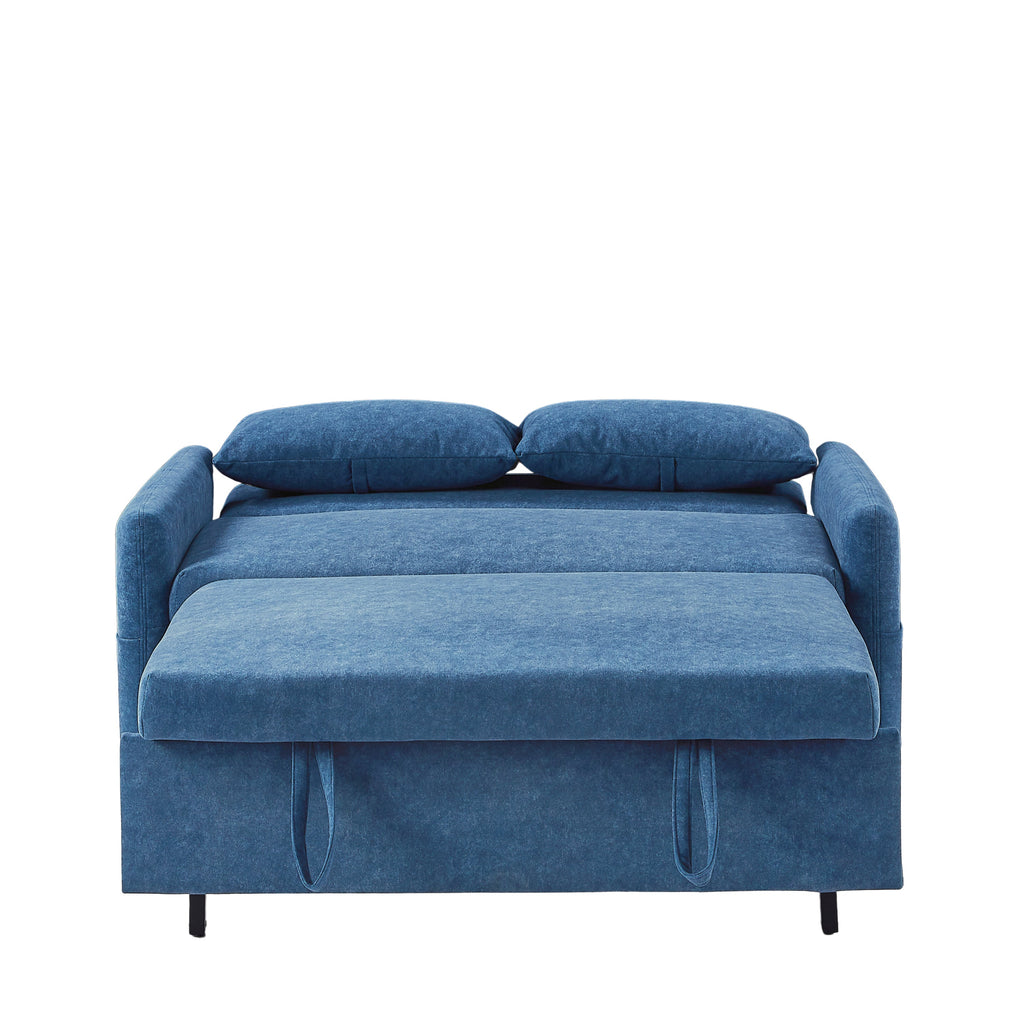 55.1" Pull Out Sleep Sofa Bed Loveseats Sofa Couch with Adjustable Backrest, Storage Pockets, 2 Soft Pillows, USB Ports for Living Room, Bedroom, Apartment, Office, Blue
