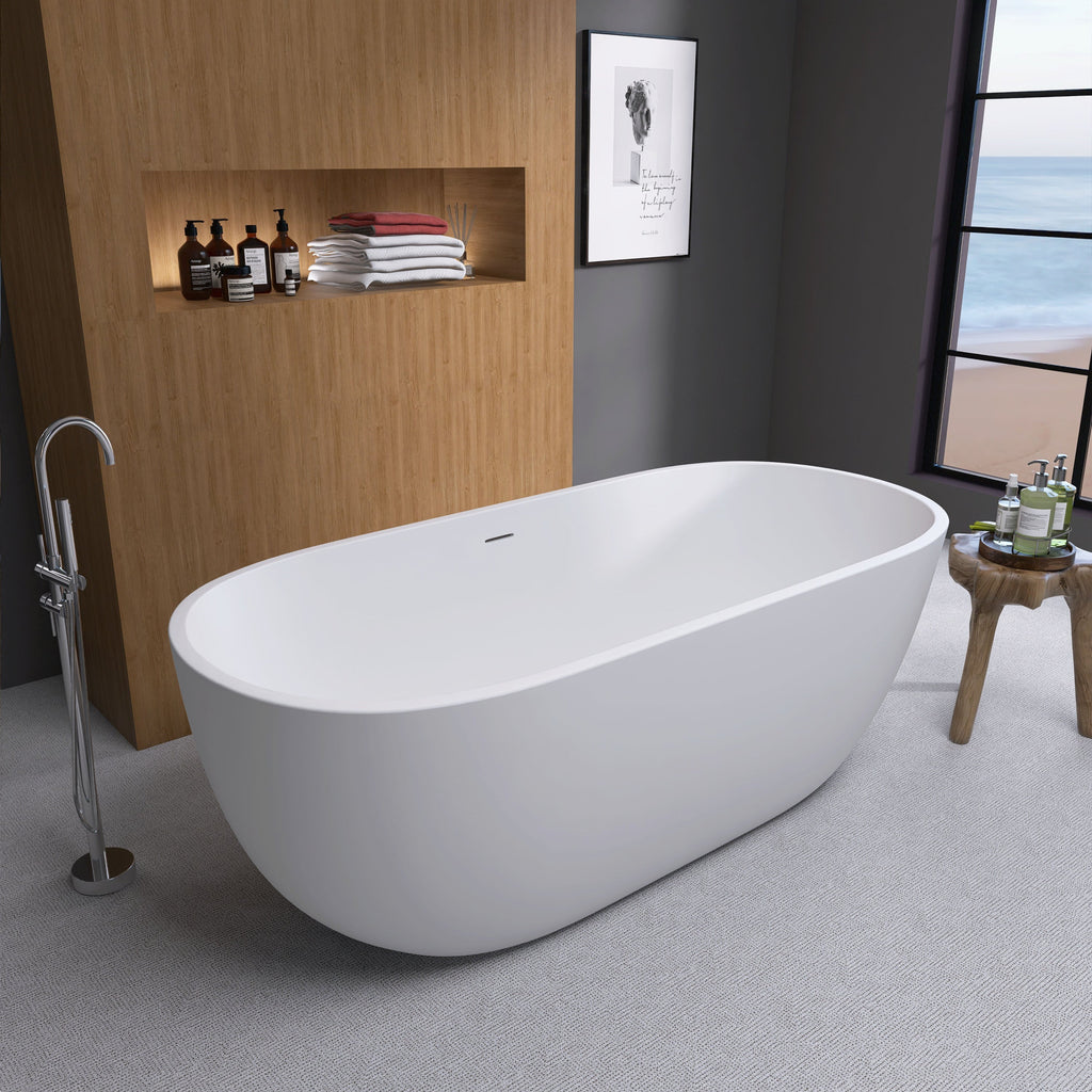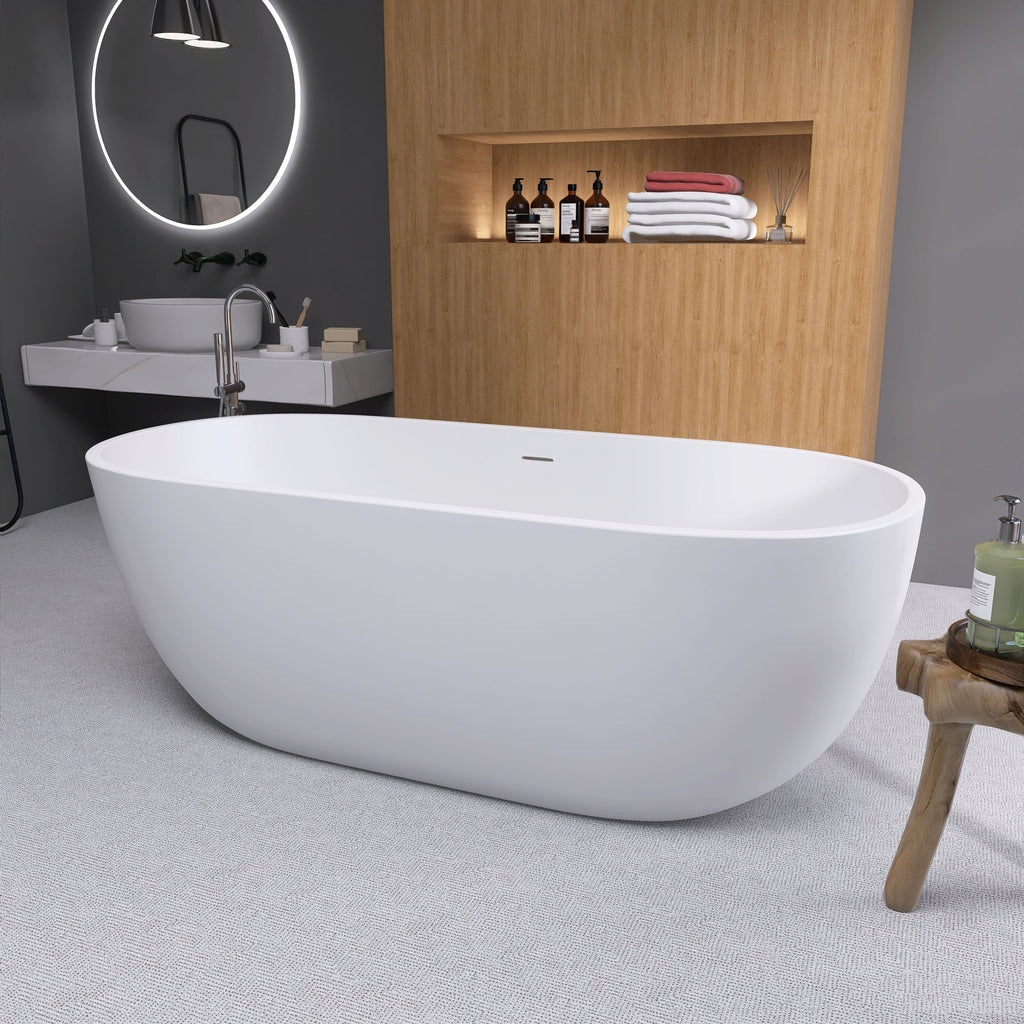 The modern design of oval shape white free standing tub, combining luxury,elegance and fashion, creates a unique bathing space for you.With excellent heat retention as well as high gloss white finish,this alone soaking tub is easy to keep bright and clean as new and never outdated after long-time usage.