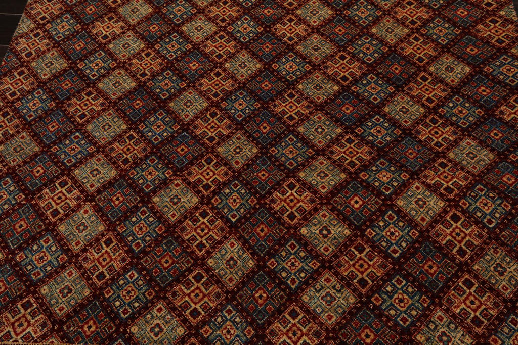 Kashkuli rugs are made in southwestern part of Iran by nomadic people. These attractive rugs are made entirely of wool with fine weave, fairly short pile and natural dyes. The yarns used for the pile are very soft and silky and this gives the rugs a beautiful sheen. Their designs are simplistic, influenced by folk inspired motifs, traditional geometric designs as well as naturalistic representations of animal motifs, people and trees of life. This simple yet dramatic geometric aesthetic embodies a certain modern, free-spirited style for which Kashkuli rugs are known.