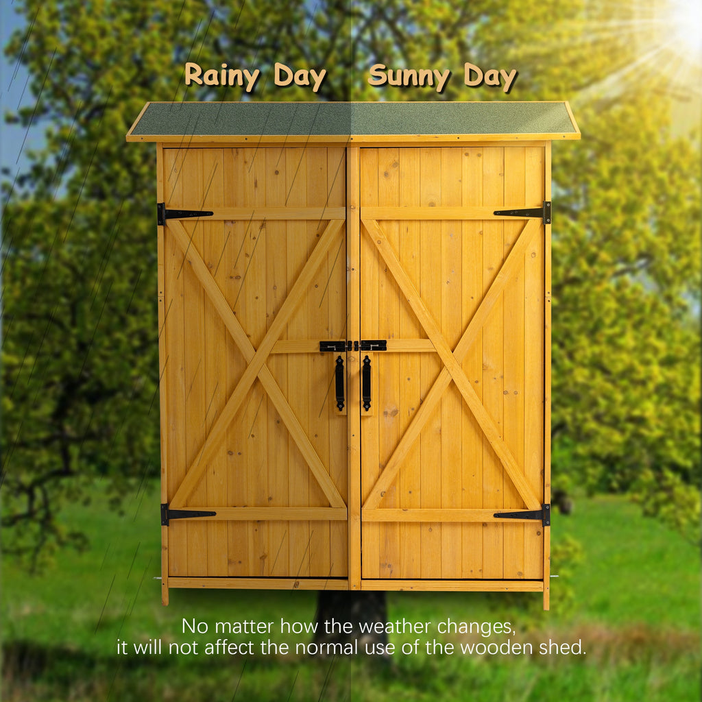 • [Multifunctional Storage Shed]This fir wood storage cabinet can match well with various places. It can be used as a garden tool storage cabinet, pool supplies storage cabinet and lawn maintenance equipment shed.