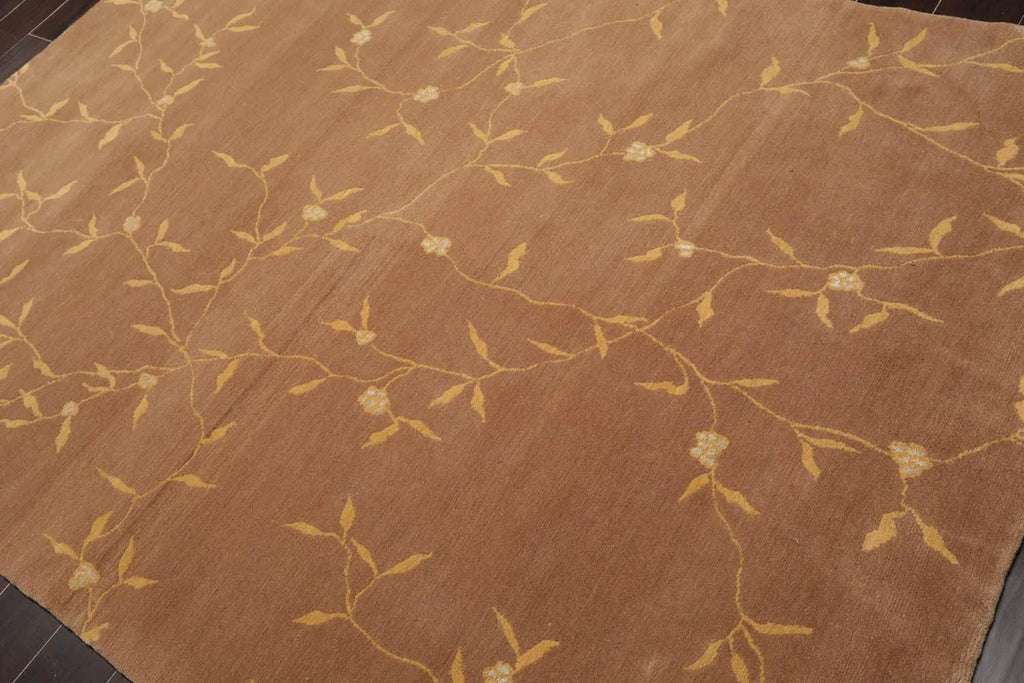 5'6''x8'6'' Hand Knotted Tibetan Wool and Silk Transitional Oriental Area Rug Camel, Gold Color