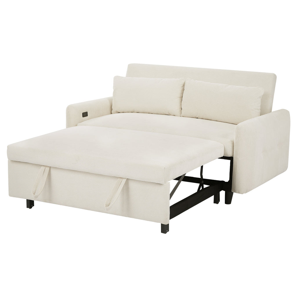 57.48" Pull-out Sofa Bed Convertible Couch 2 Seat Loveseat Sofa Modern Sleeper Sofa with Two Throw Pillows and USB Ports for Living Room, Beige