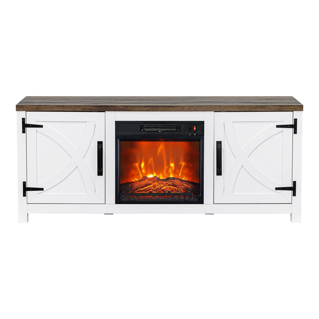 58" Farmhouse TV Stand with 18" Insert Electric Fireplace for Living Room