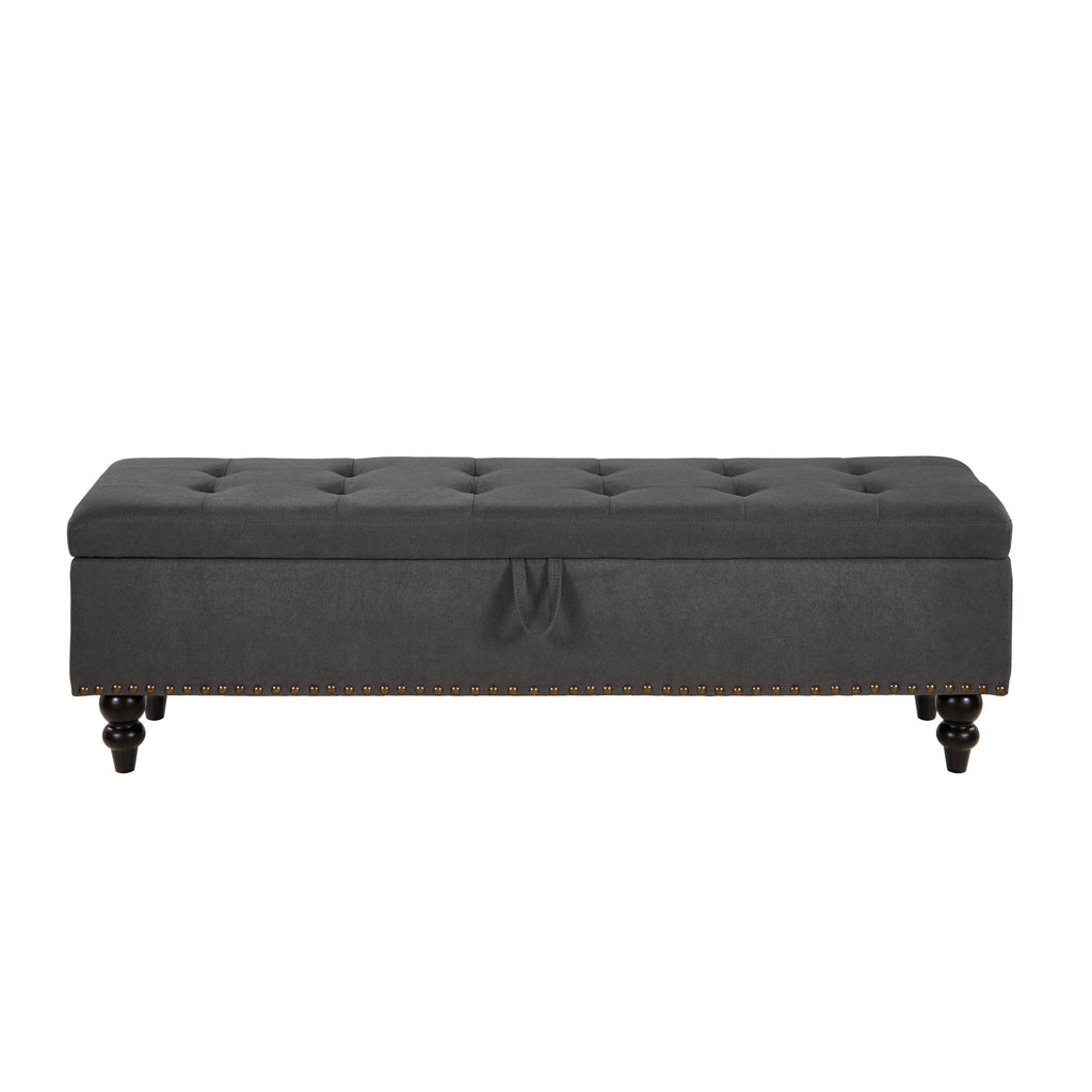 • CONTEMPORARY DESIGN: Button tufting design for the top,smooth and soft fabric upholstery plus sturdy solid wood legs,bronze nails decoration, this storage ottoman offers the look, feel, and design of a truly contemporary piece. With a minimalistic yet refined structure, this piece brings out a simplistic style that emphasizes comfort and functionality.