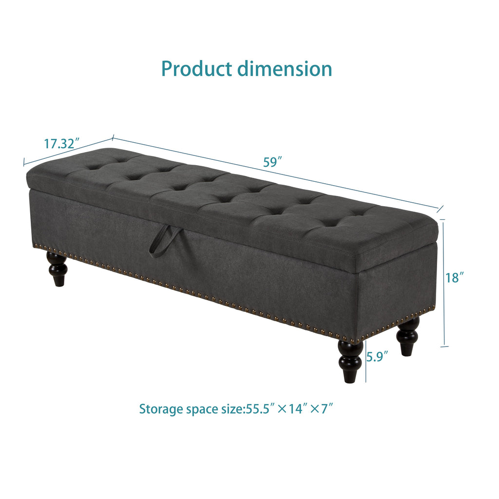 • IDEAL FOR YOUR ROOM: The size of this bench is 59"L x 17.32"W x 18"H. Storage dimension:55.5"L x 14"W x 7"H