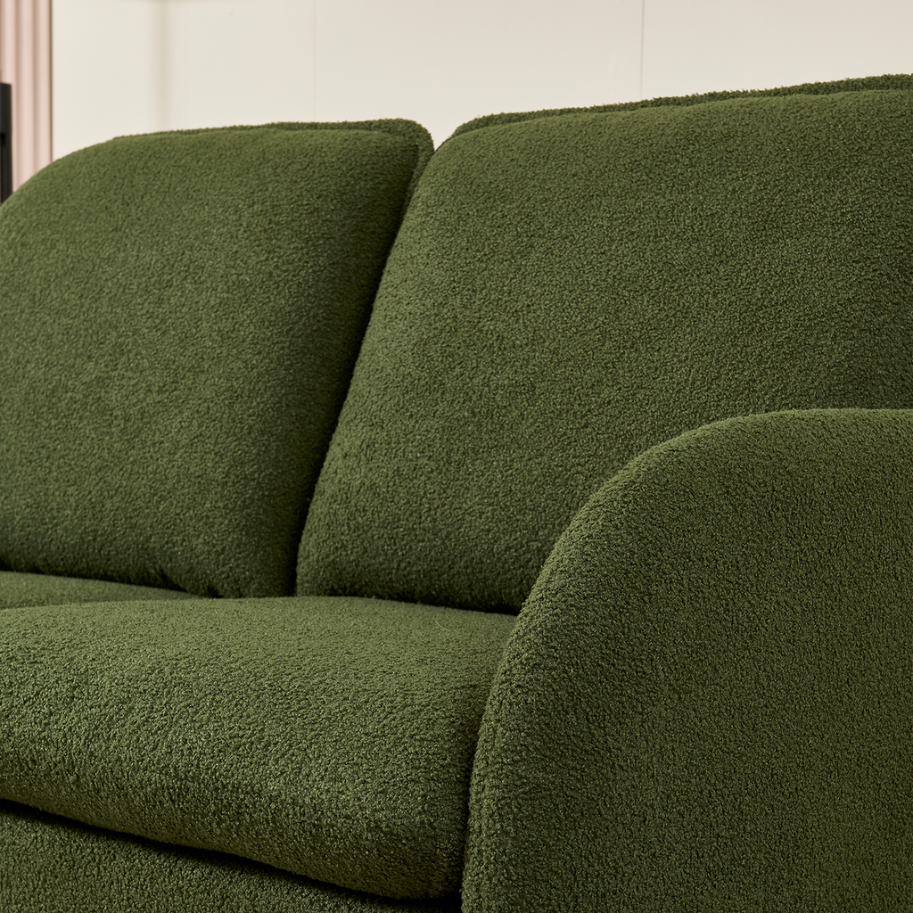 - Experience unmatched comfort with our modern loveseat. Crafted from luxurious Sherpa fabric, resilient foam cushions, and a durable wooden frame, it provides outstanding stability and seating support, accommodating up to 1000 lbs for years of worry-free relaxation.