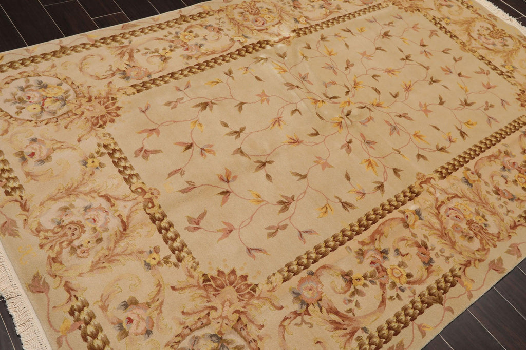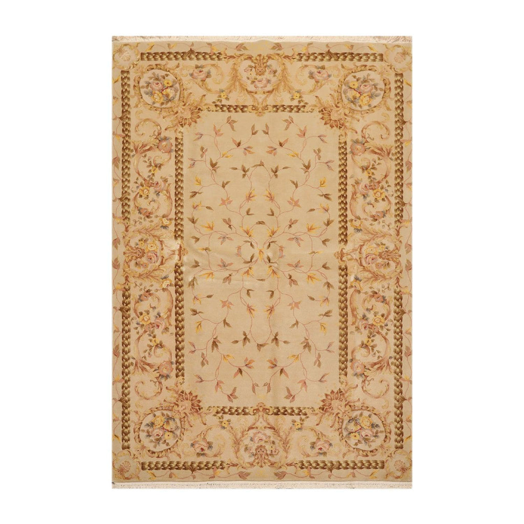 This is a beautiful Beige, Brown, Rust, Gold, Grey, Multi Color Hand Knotted Aubusson Savonnerie Oriental Area Rug Wool & Silk Rug. Its elegant style is easy to decorate with and perfect for living room, dining room, bed room or anywhere in the residence or office.