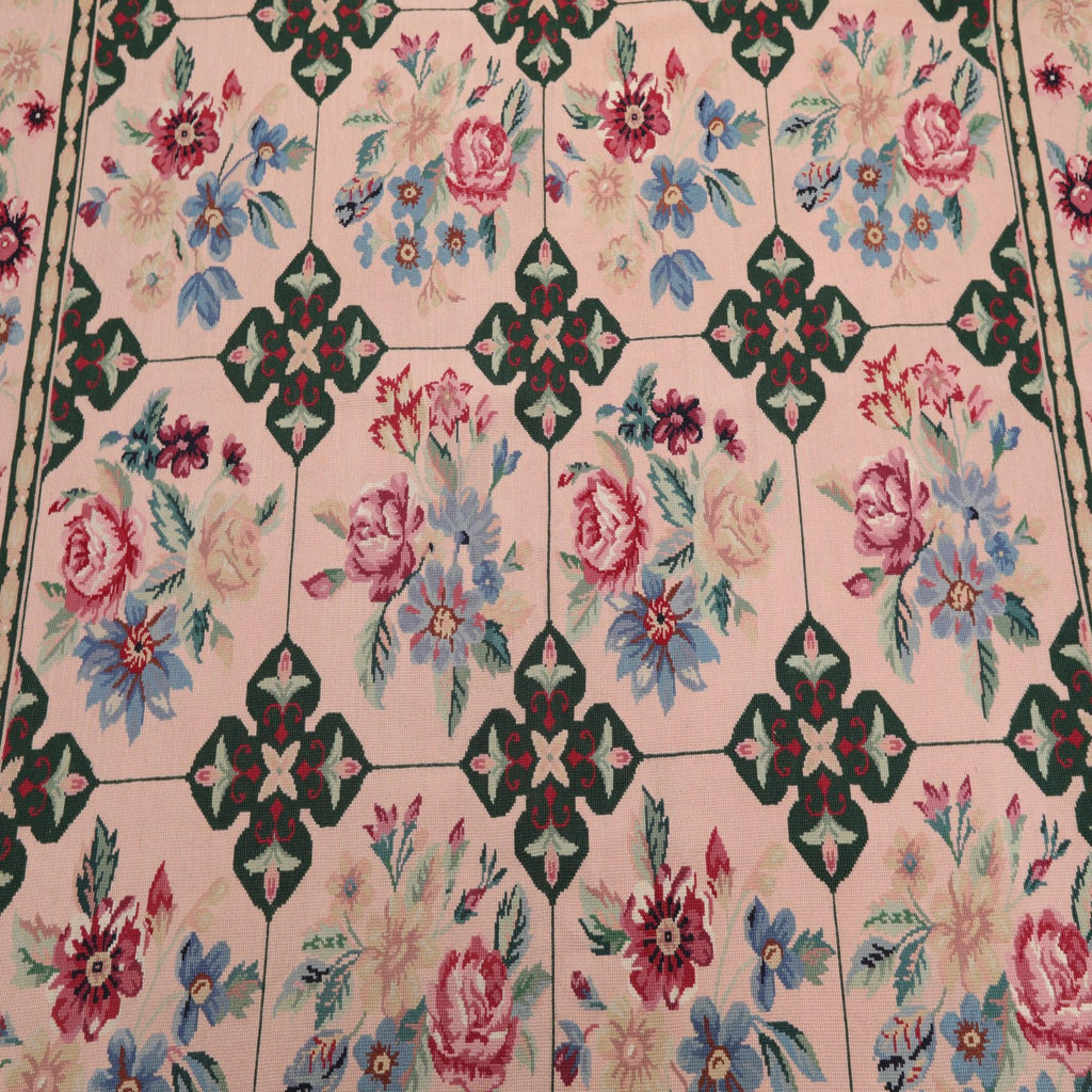 This is a beautiful Apricot, Blue, Aqua, Rose, Rust, Multi Color Hand Woven French Aubusson Needlepoint Area Rug Wool Rug. Its elegant style is easy to decorate with and perfect for living room, dining room, bedroom or anywhere in the residence or office. This Aubusson is 100% wool in thin pile. Rugs and tapestries were made famous during 14th and 15th century and were made in Aubusson, a small medieval town in France. The rugs have motifs in traditional design. During 1930s tapestry was made popular by artists such as Cocteau, Dufy, Dali, Braque, Calder and Picasso who were invited to Aubusson to express themselves through the medium of wool.