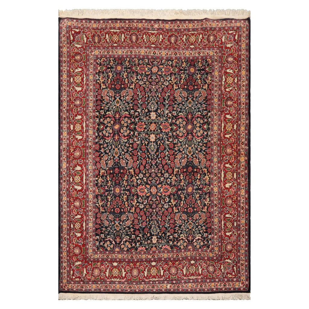 Cosmopolitan and sophisticated in look, the rug has been hand crafted by artisans to a flawless composition. The main field comprising highly stylized floral and botanical elements is encompassed by a handsome multi-band border. The design of the border compliments the inner field and adds gentle grandeur to the artful composition of the rug. This rug representing an illustrious legacy of exquisite artistry and intricate craftsmanship is primed to add visual glamor and class to its surroundings. Its soft texture and timeless design make it ideal to enhance any space where it is placed.