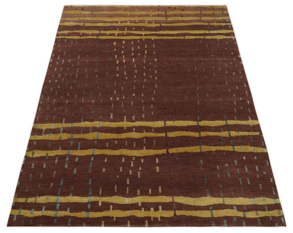 This exquisitely designed wool and art silk blend rug is sure to add sophistication and texture to your living space. Featuring a brown and gold striped pattern and meticulously hand-loomed for superior quality, this rug is perfect for any décor.