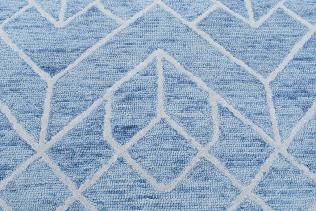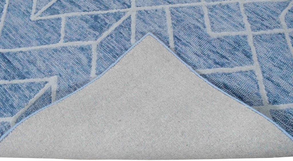This Hand-Hooked Area Rug has been made with fine wool. The geometrical design in shaded blue color gives a subtle and elegant look to your room.