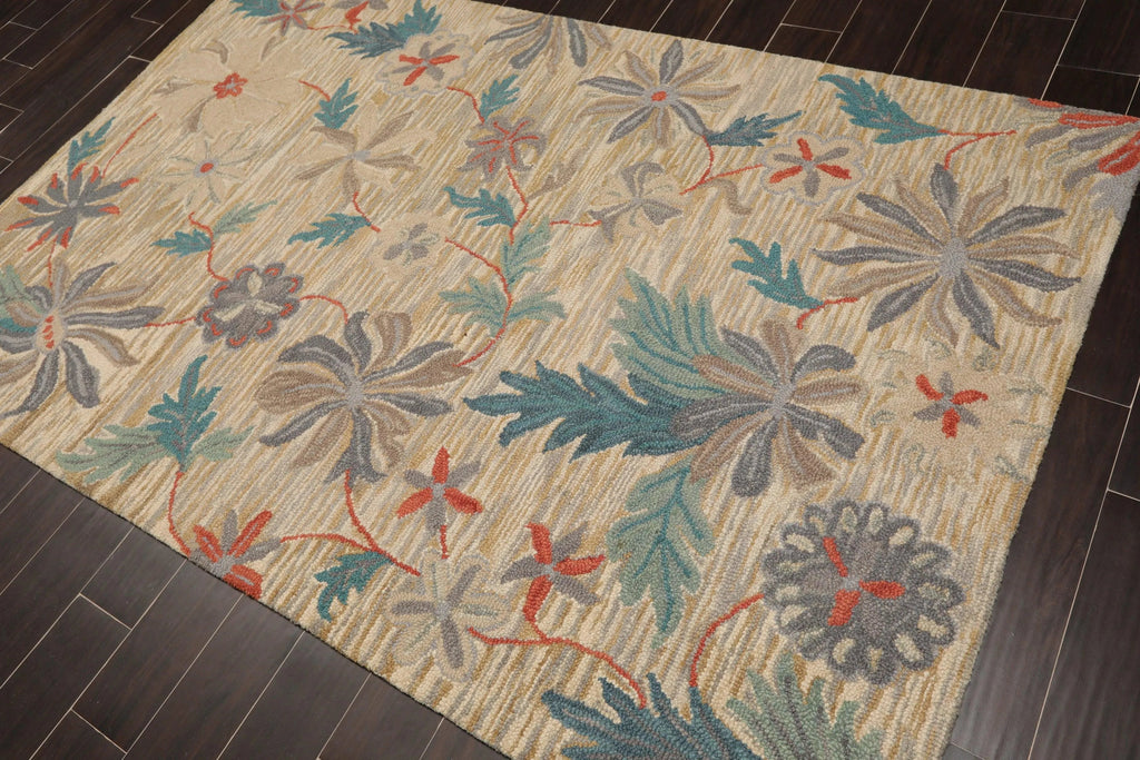 This is a beautiful Beige, Gray, Taupe, Aqua, Rust, Multi Color Loop Pile Floral Hand Tufted Persian Oriental 100% Wool Rug. Its elegant style is easy to decorate with and perfect for living room, dining room, bedroom or anywhere in the residence or office.