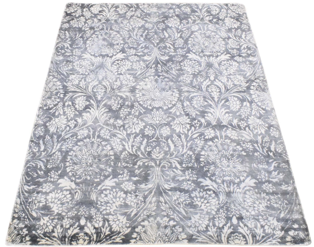 5x8 Blue and Silver Handmade Area Rug Made With Fine Viscose