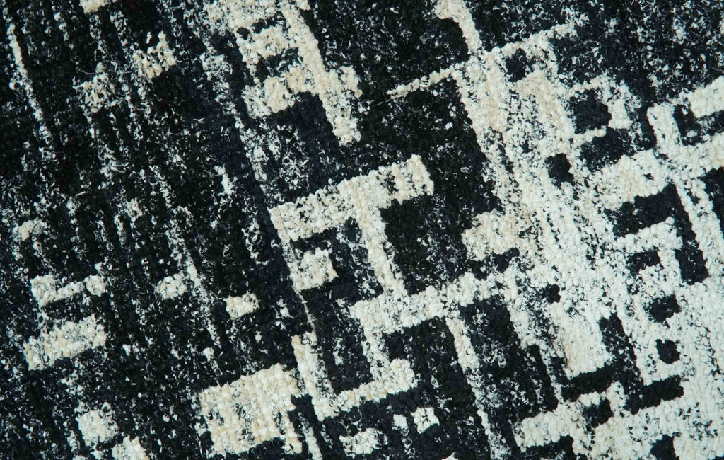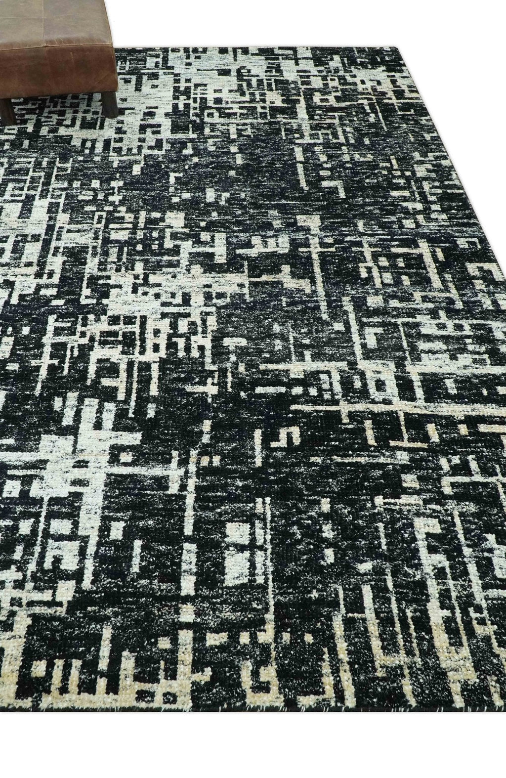 This 5X8 Hand-Knotted Black and Ivory Modern Abstract Contemporary Recycled Silk Area Rug is expertly crafted from upcycled silk, creating a truly unique and sustainable piece. With a hand-knotted design and modern abstract pattern, it will add a touch of sophistication and eco-consciousness to any room.
