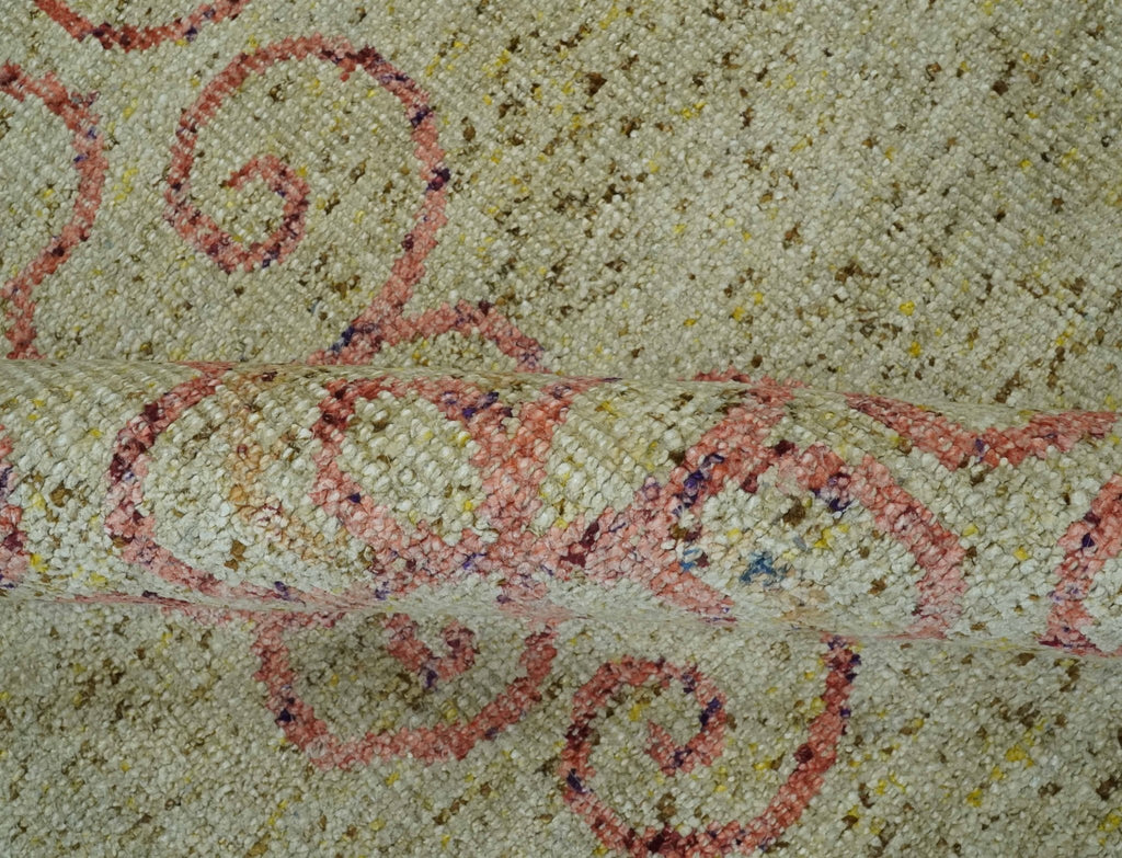 5x8 Olive, Silver and dark Peach Hand Knotted Traditional Floral wool area Rug