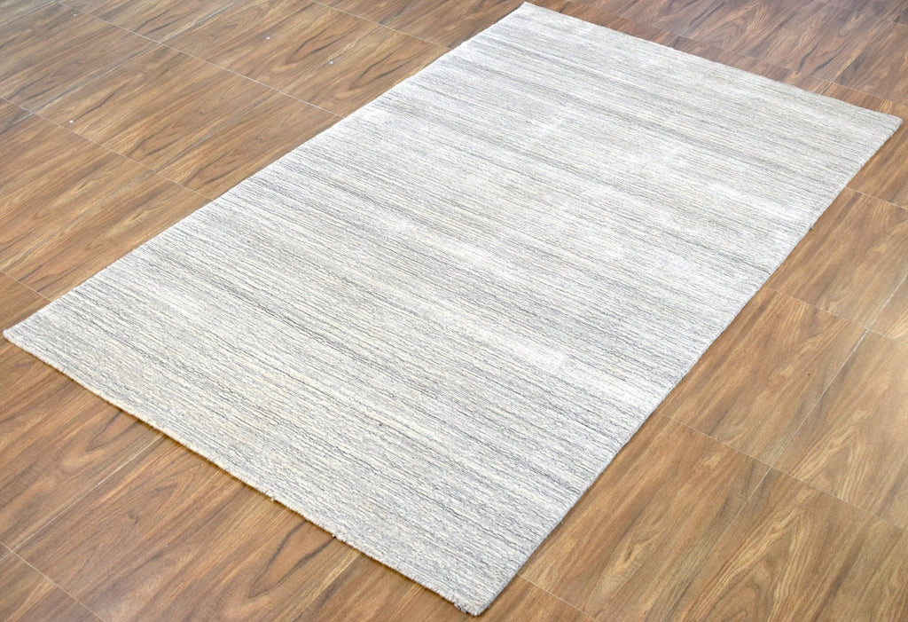 5x8 Solid Beige and Silver Area Rug | Handmade with Wool & Viscose | TRD1007258