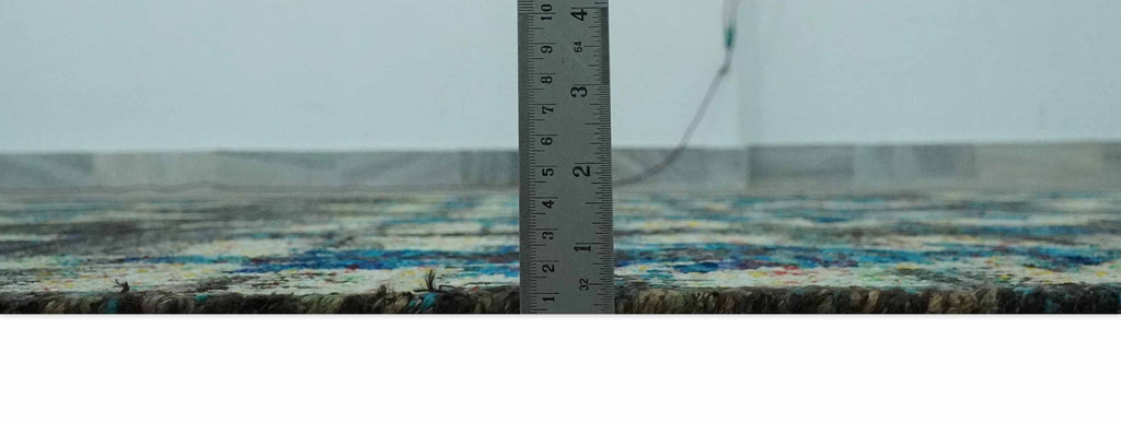 This 5x8 traditional wool rug features a timeless Ikat design in charcoal, blue, and beige. Hand-knotted for durability and quality, this rug is a perfect addition to any room in your home. Elevate your space with this classic and elegant piece.