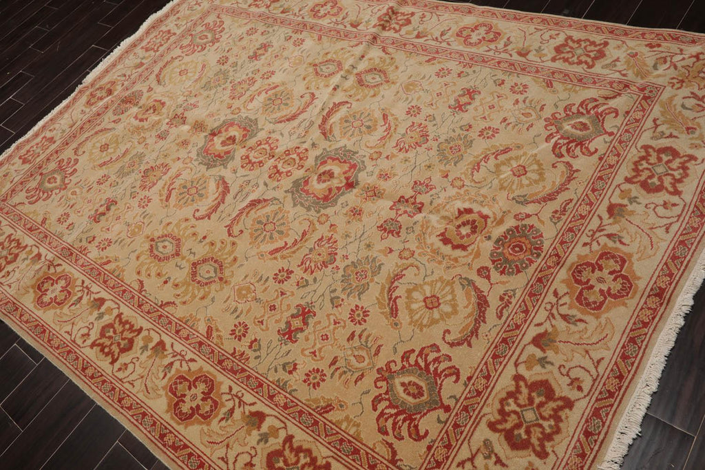 Cosmopolitan and sophisticated in look, the rug has been hand crafted by artisans to a flawless composition. The main field comprising highly stylized floral and botanical elements is encompassed by a handsome multi-band border. The design of the border compliments the inner field and adds gentle grandeur to the artful composition of the rug. This rug representing an illustrious legacy of exquisite artistry and intricate craftsmanship is primed to add visual glamor and class to its surroundings. Its soft texture and timeless design make it ideal to enhance any space where it is placed.