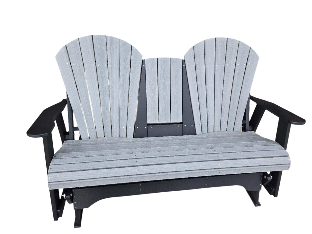 This Adirondack style 6-foot glider bench is the perfect addition to any outdoor seating area. Comfortably seats 3 with a little room to spare. Or use for 2 with the fold-down center console.