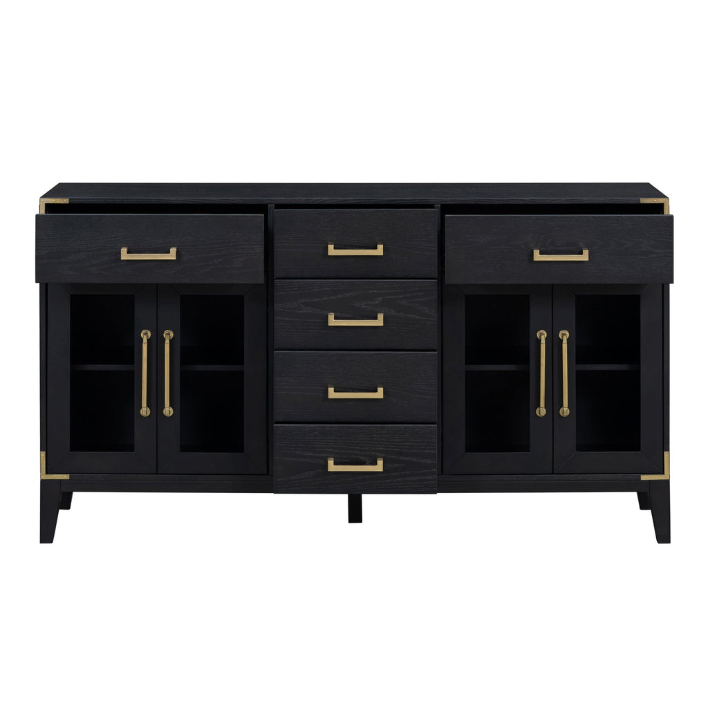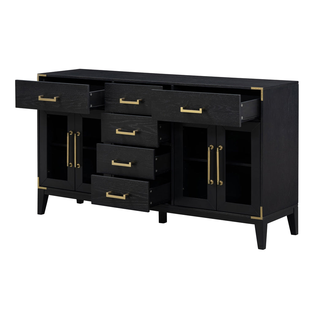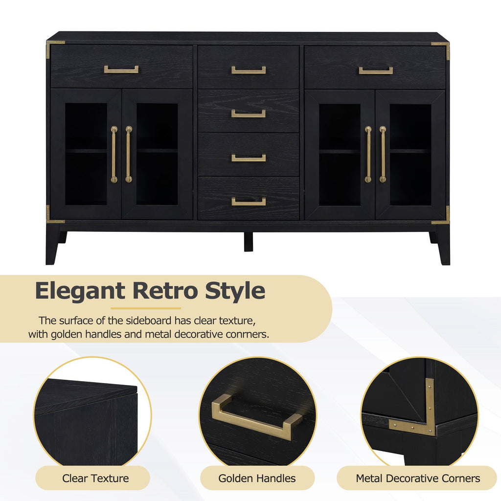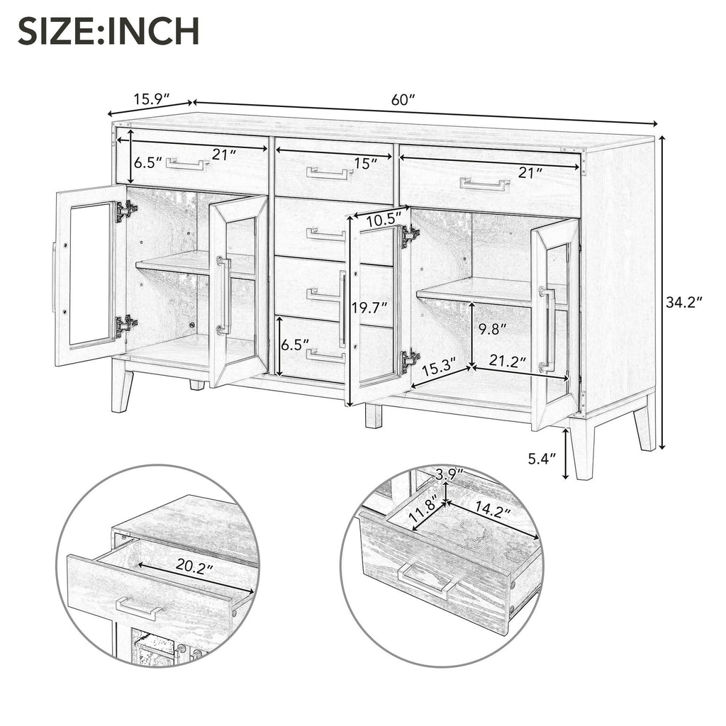 - Multifunctional Sideboard: This 6-drawer, 2-cabinet retro sideboard is available in black and vintage blue. Each color is sophisticated and functional. The powerful storage space of this retro sideboard is perfect for everyday home use. Dimensions: 60'' x 15.9'' x 34.2''. Whether it's your dining room, living room or entryway, this sideboard will fit perfectly into your home.