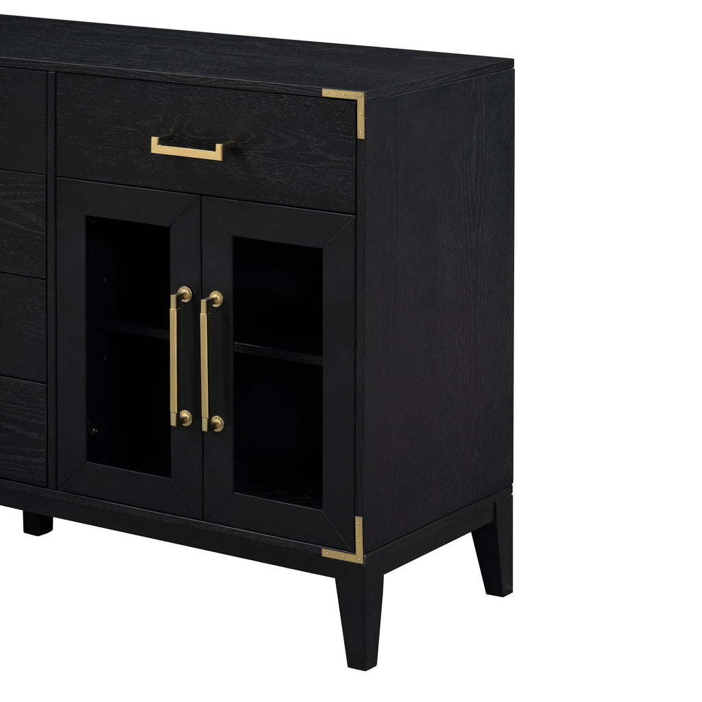 This sideboard has powerful storage space and is the best choice for storing items. Not only does it have 6 drawers, but it also has two large cabinets. At the same time, there are two built-in adjustable shelves. You can adjust three different heights according to different usage needs. This extra-large storage sideboard meets almost all your storage needs.