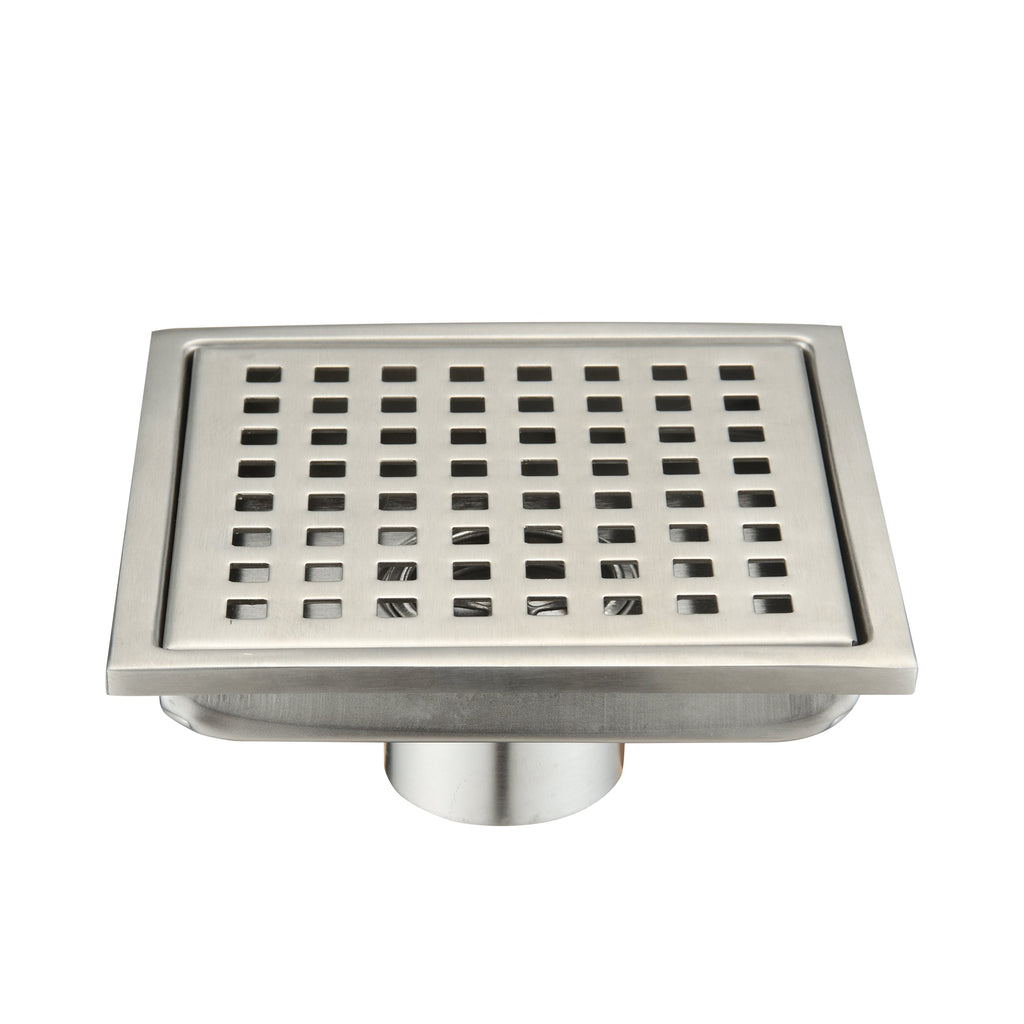 【square Shower floor drain Design】The square drain cover with grid design to enhance water flowing. Embedded design offer a invisible and seamless look on your floor. Heavy duty steel cover offer a good sealing ability.