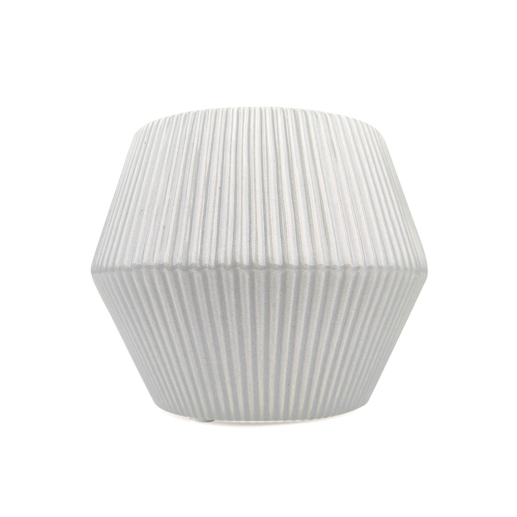Introducing the 6-inch White Glazed Geometric Striped Ceramic Planter, a stylish and versatile planter that combines modern aesthetics with functionality. This exquisite planter features a geometric shape that adds a contemporary touch to any living space or garden.