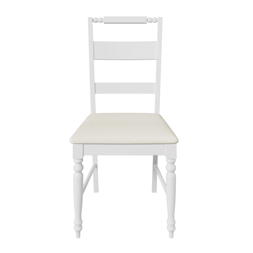 This dining set boasts a 59x35.4-inch top supported by elegantly turned legs. The slat back chairs feature cushioned linen seats, turned cap rails, and turned front legs with protective nylon chair glides. The bench also includes a cushioned linen seat, turned cap rails, and turned legs.