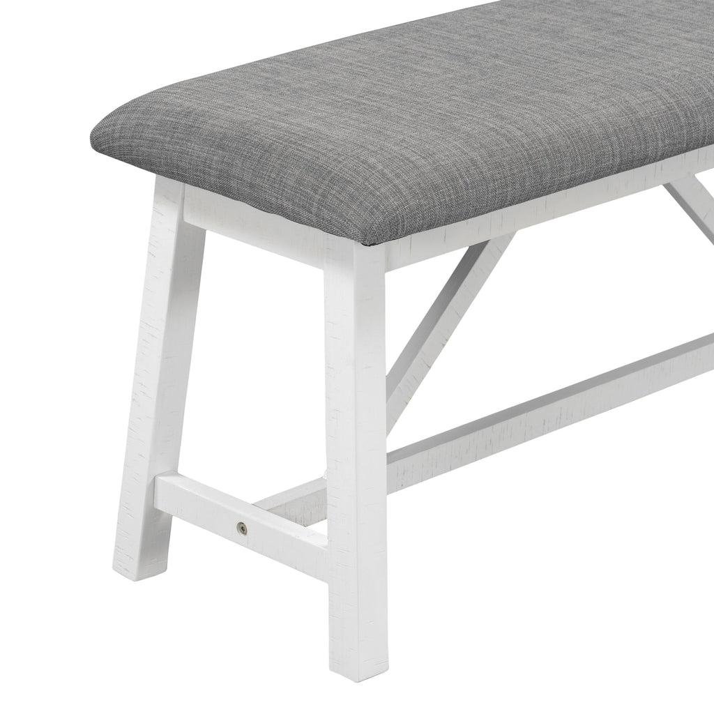 6 Piece Dining Table Set Wood Dining Table and chair Kitchen Table Set with Table, Bench and 4 Chairs, Rustic Style , White+Gray