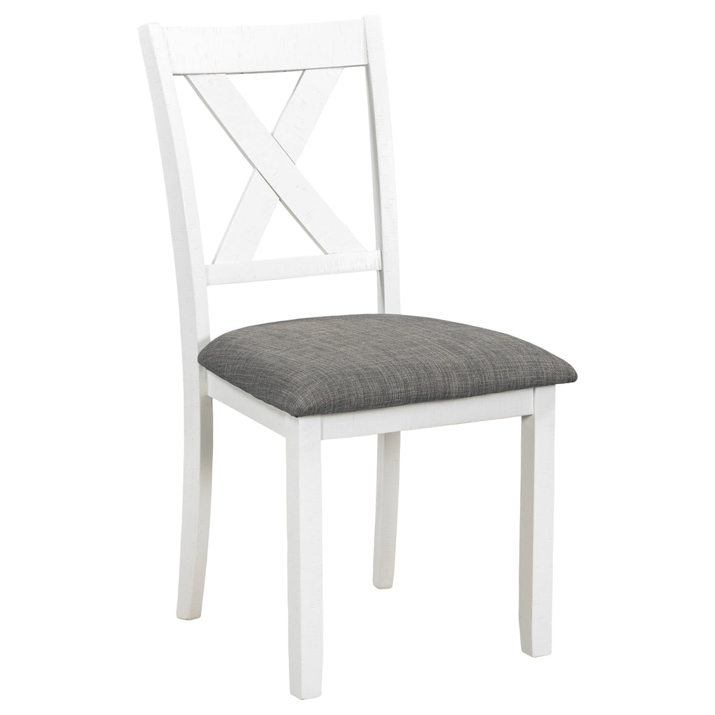 - Comfortable seating The X style chair back promotes great air circulation while both chair and bench seat are padded with 2.2-inch thick cushions, keeping you cool and comfortable all year long. Keep your dining set fresh and clean by simply wiping down with a wet cotton cloth.
