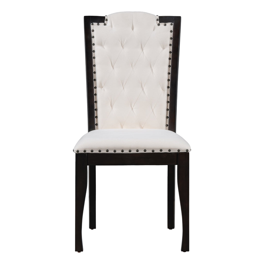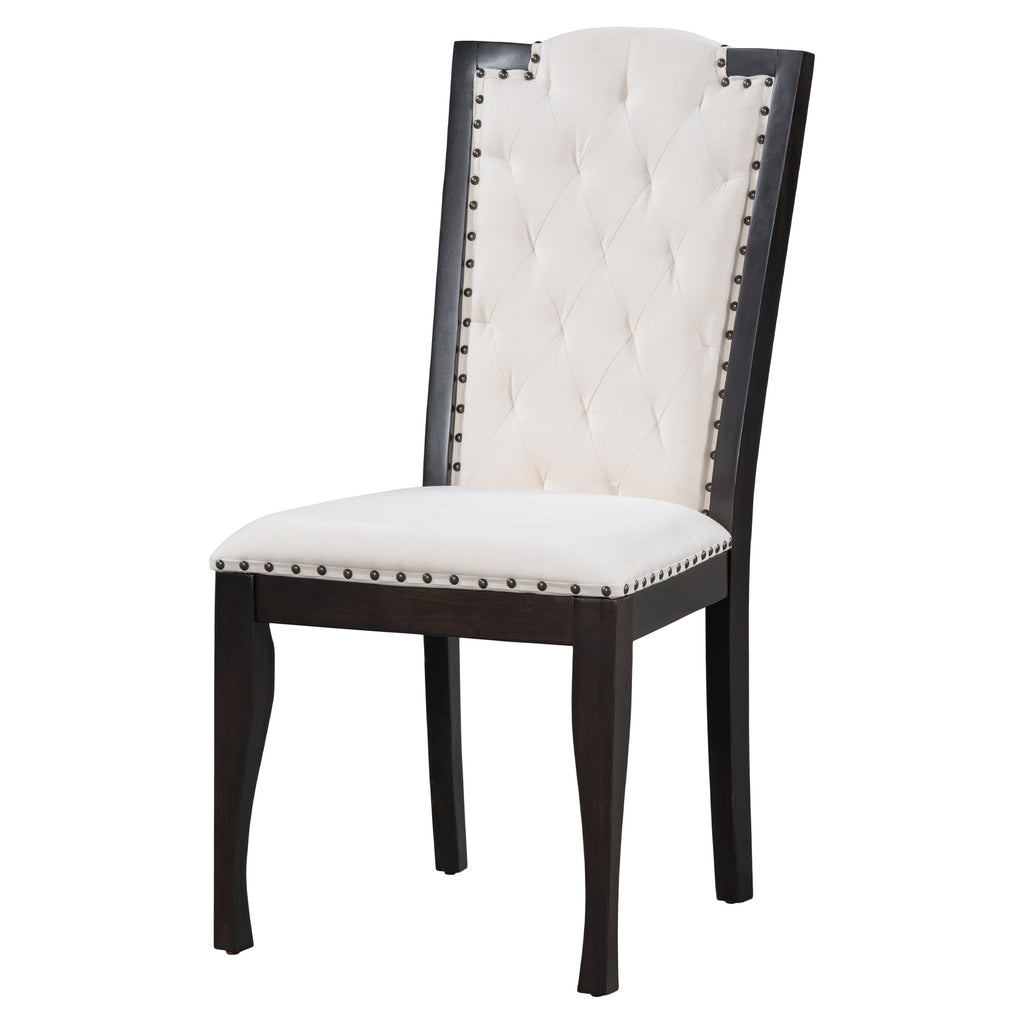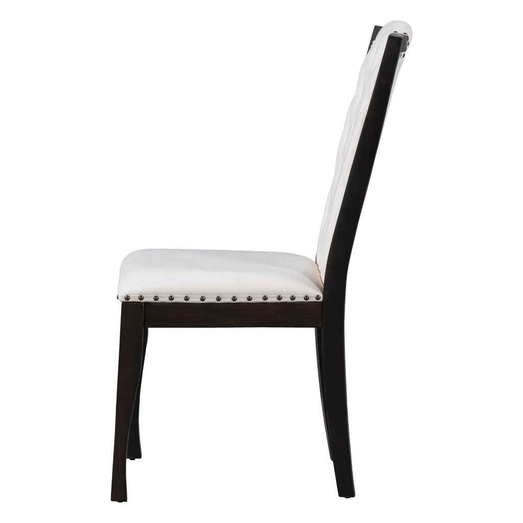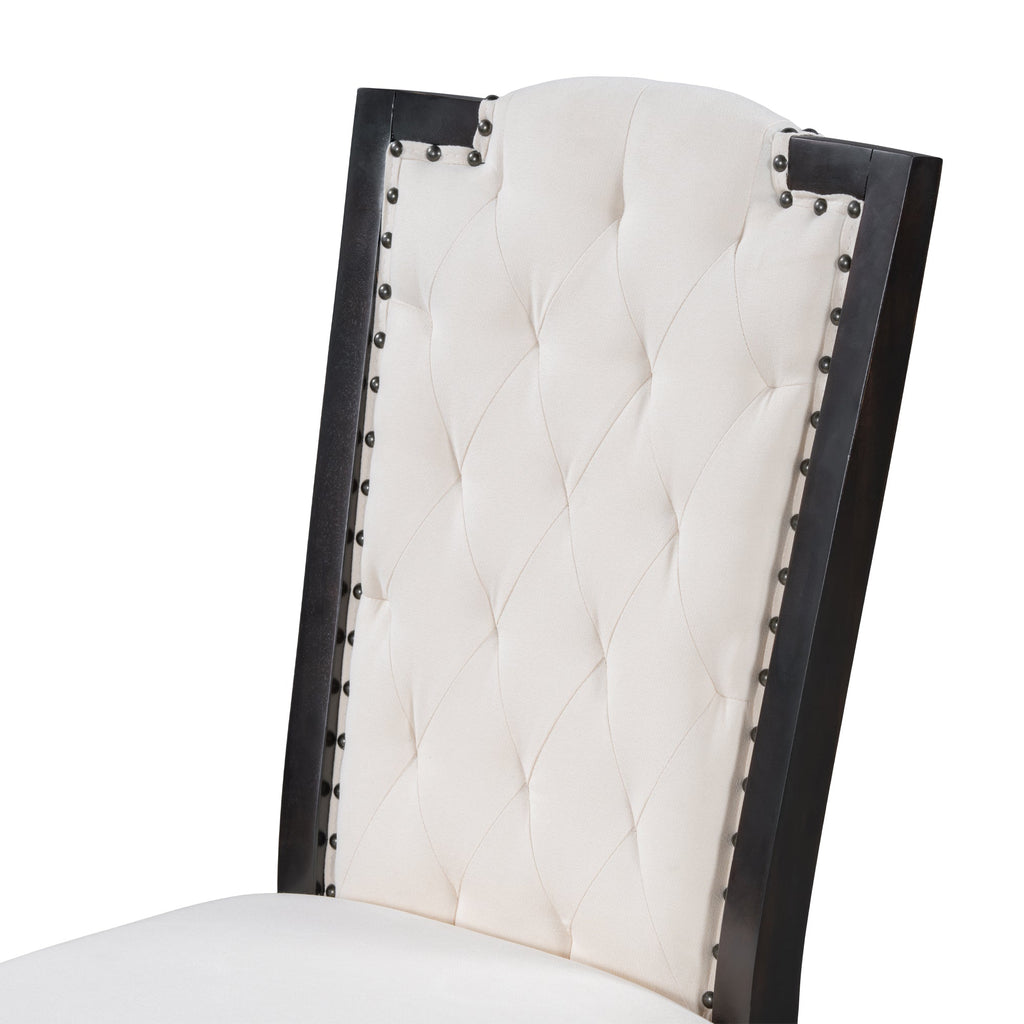 - Exquisite Craftsmanship and Comfort: Attention to detail shines through in this dining table set for 6 with chairs, as evident in the soft and comfortable upholstered chairs adorned with beautiful rivet edges on the chair back. The four high-back upholstered tables and chairs feature curved chair back tops, providing excellent back support for added comfort during extended gatherings.