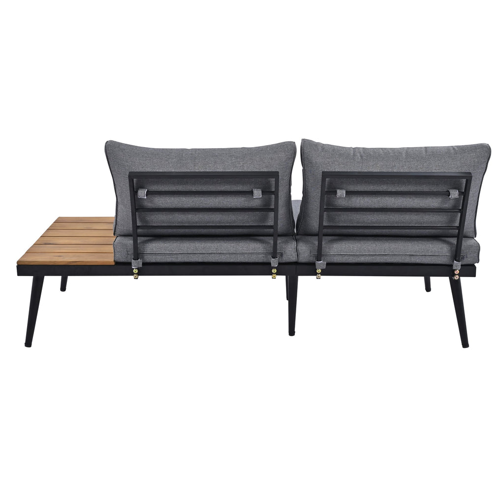 - Charming Modern Style: Soft sofa set and a sophisticated wooden coffee table add a functional and stylish element to your patio. The color of acacia wood is paired with gray or beige upholstery. The striped wooden table top also brings a natural and rustic feel. This modern patio sectional sofa set creates a strong summer atmosphere. It will become a great decoration that suits your outdoor style.