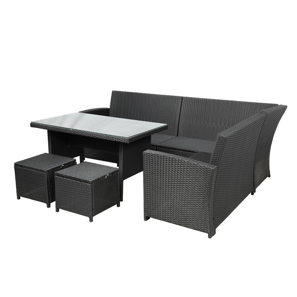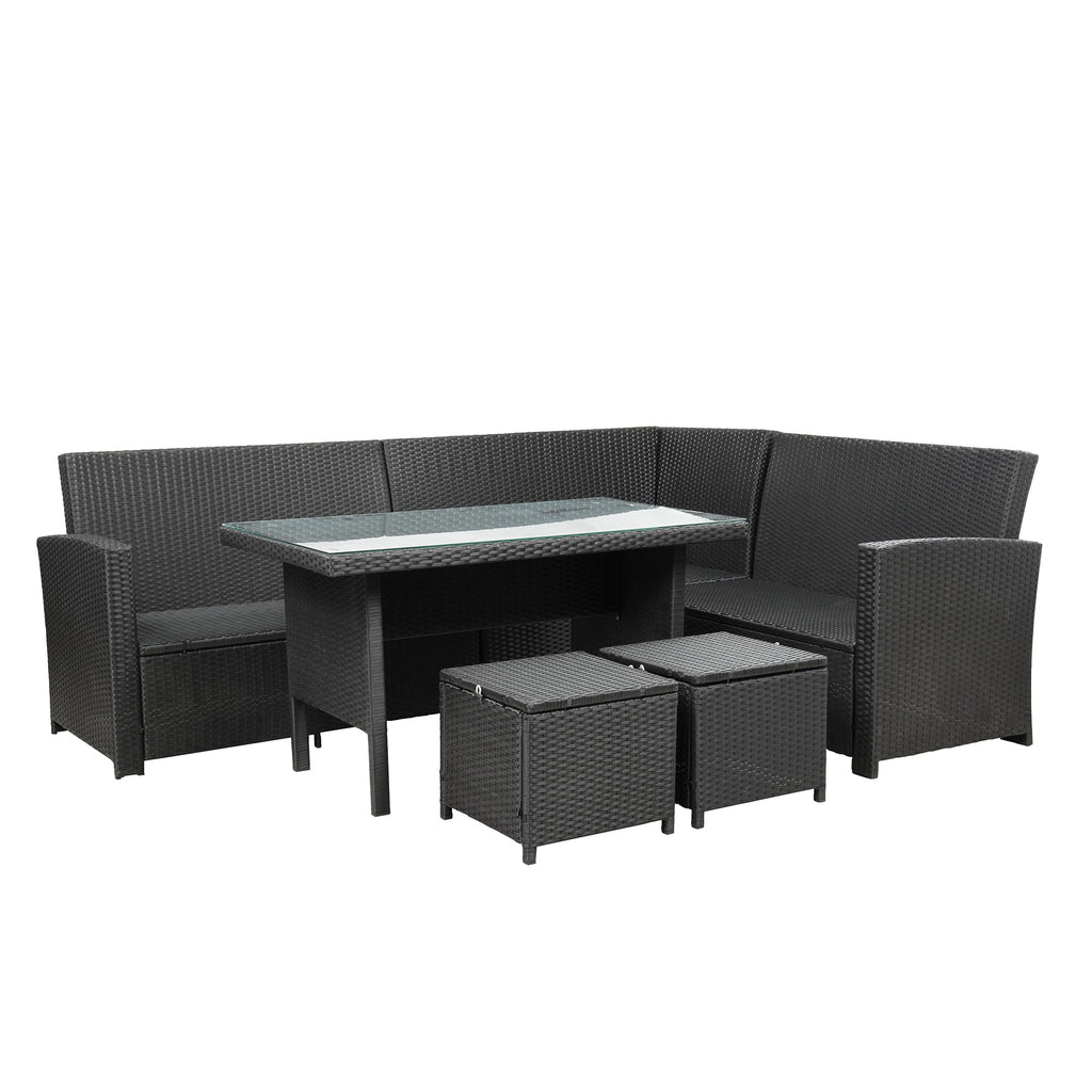 6-Piece Patio Furniture Set Outdoor Sectional Sofa with Glass Table, Ottomans for Pool, Backyard, Lawn (Black)