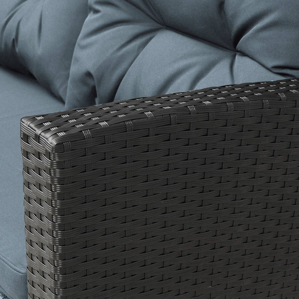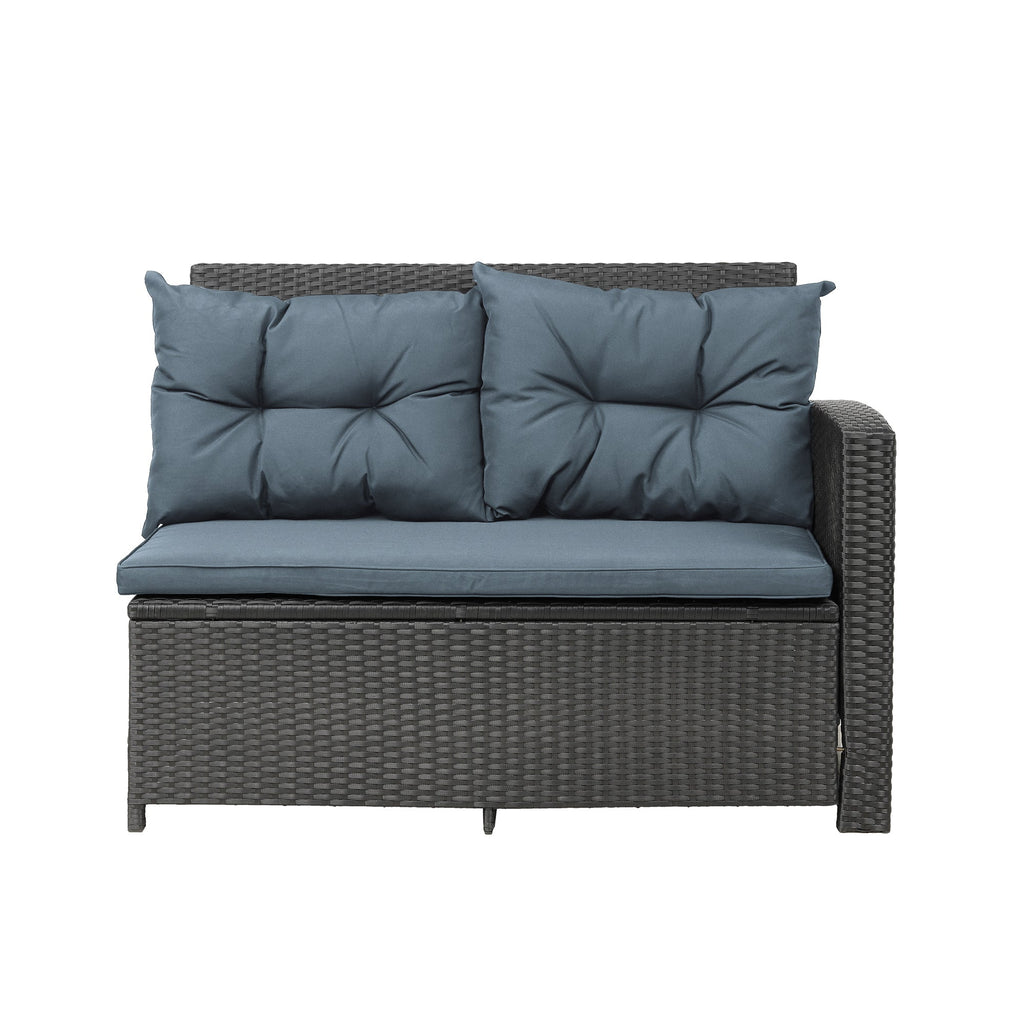 【Add A Touch of Elegance】The woven natural-looking UV-resistant rattan of this this beautiful 6 piece rattan wicker patio set comes in two understated colors (gray or black) which highlight the dark gray cushions, while the sleek tempered glass tabletop gives off a sophisticated aura that turns your lawn or garden into paradise.