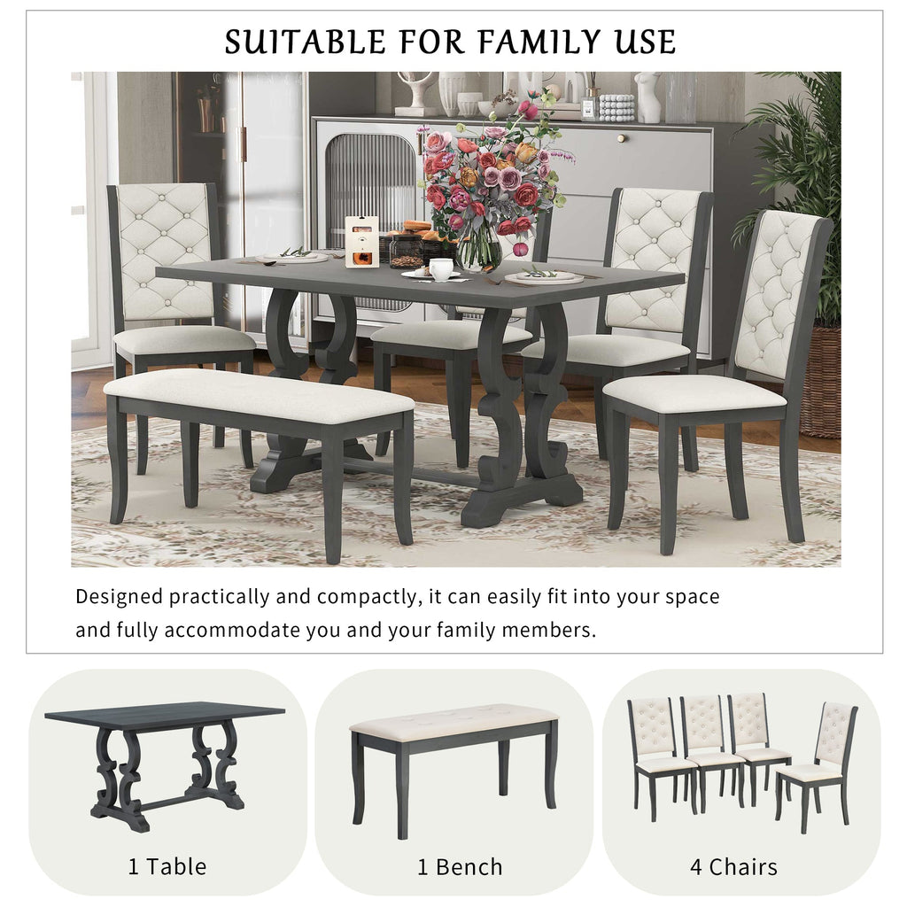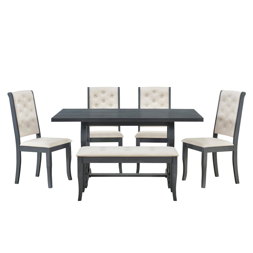 TREXM 6-Piece Retro Dining Set with Unique-designed Table Legs and Foam-covered Seat Backs&Cushions for Dining Room (Antique Grey)