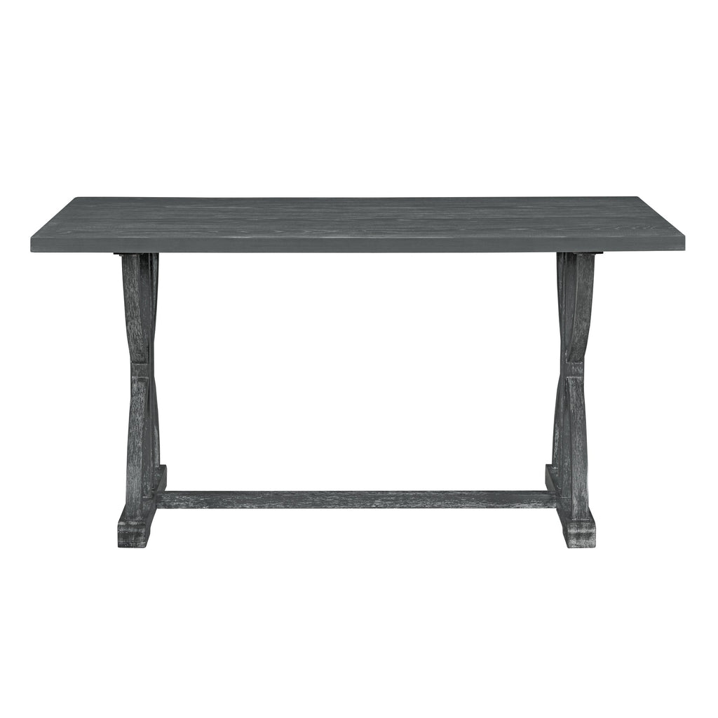 The 6-piece dining table set with its retro and elegant appearance will definitively redefine your dining and living space. The tabletop is in a simple rectangular design, and its combination of rigidity and softness makes the artistic sense stronger. Its timeworn planked ash top creates a unique two-tone contrast, while special designed legs and stretcher provide a sturdy foundation. Four solid wood dining chairs and one matching dining bench complete this excellent combo item.