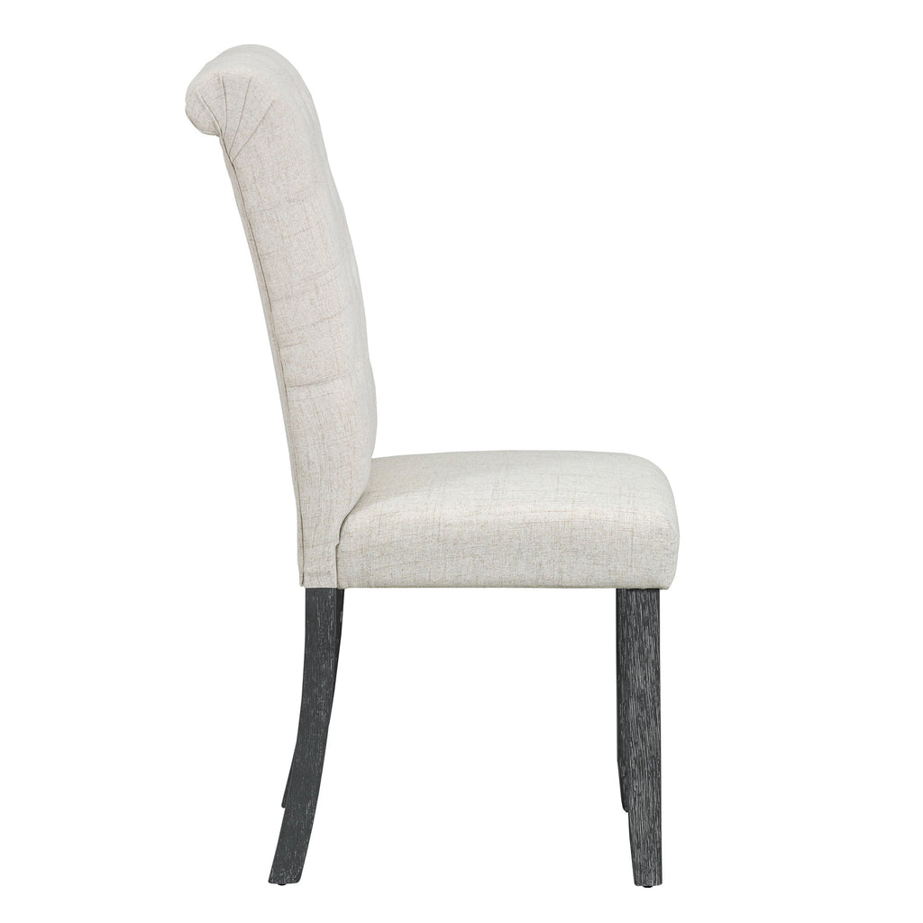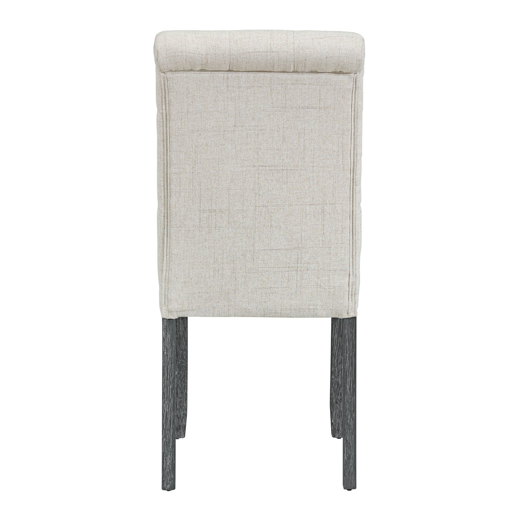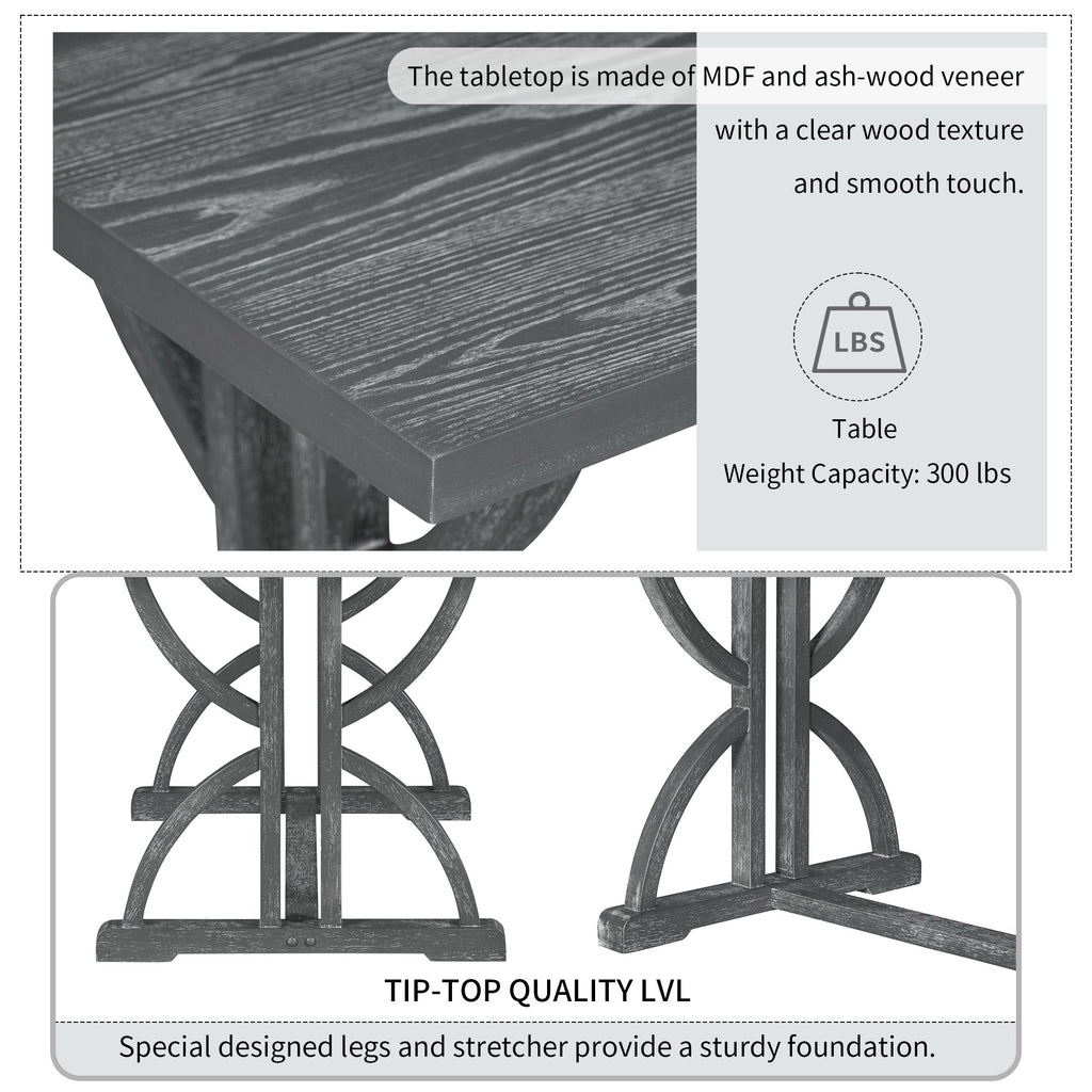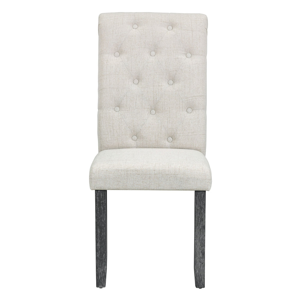 • The natural wood wash and grey finish add a distinctly rustic look that easily updates any household. Special symmetrical pattern design for table legs and button-tufting design of the seating set undoubtedly showcase a classic look, featuring an elegant and retro flair. Thick upholstered backrests of chair sets are in line with ergonomic design, thus bringing superb comfort. Whether used for chic dinner parties or casual family dinners, the dining set is sure to elevate any dining experience.