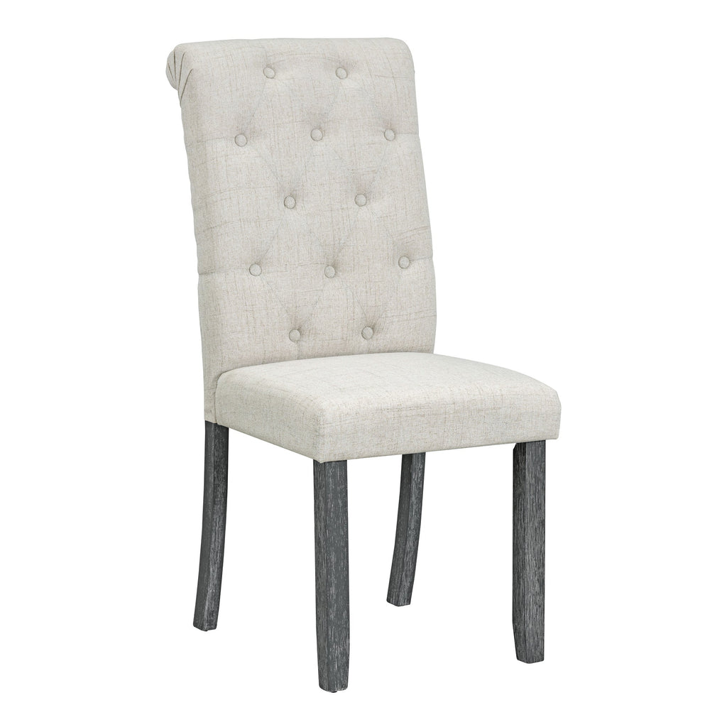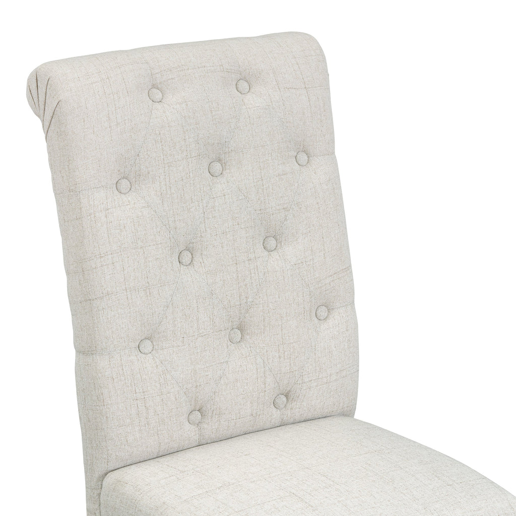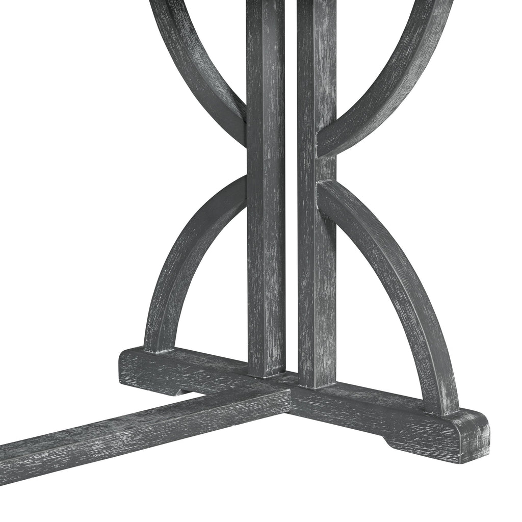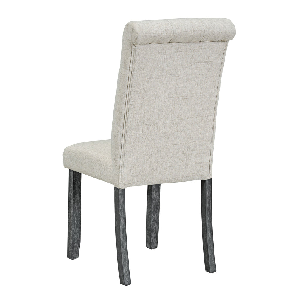 • The natural wood wash and grey finish add a distinctly rustic look that easily updates any household. Special symmetrical pattern design for table legs and button-tufting design of the seating set undoubtedly showcase a classic look, featuring an elegant and retro flair. Thick upholstered backrests of chair sets are in line with ergonomic design, thus bringing superb comfort. Whether used for chic dinner parties or casual family dinners, the dining set is sure to elevate any dining experience.